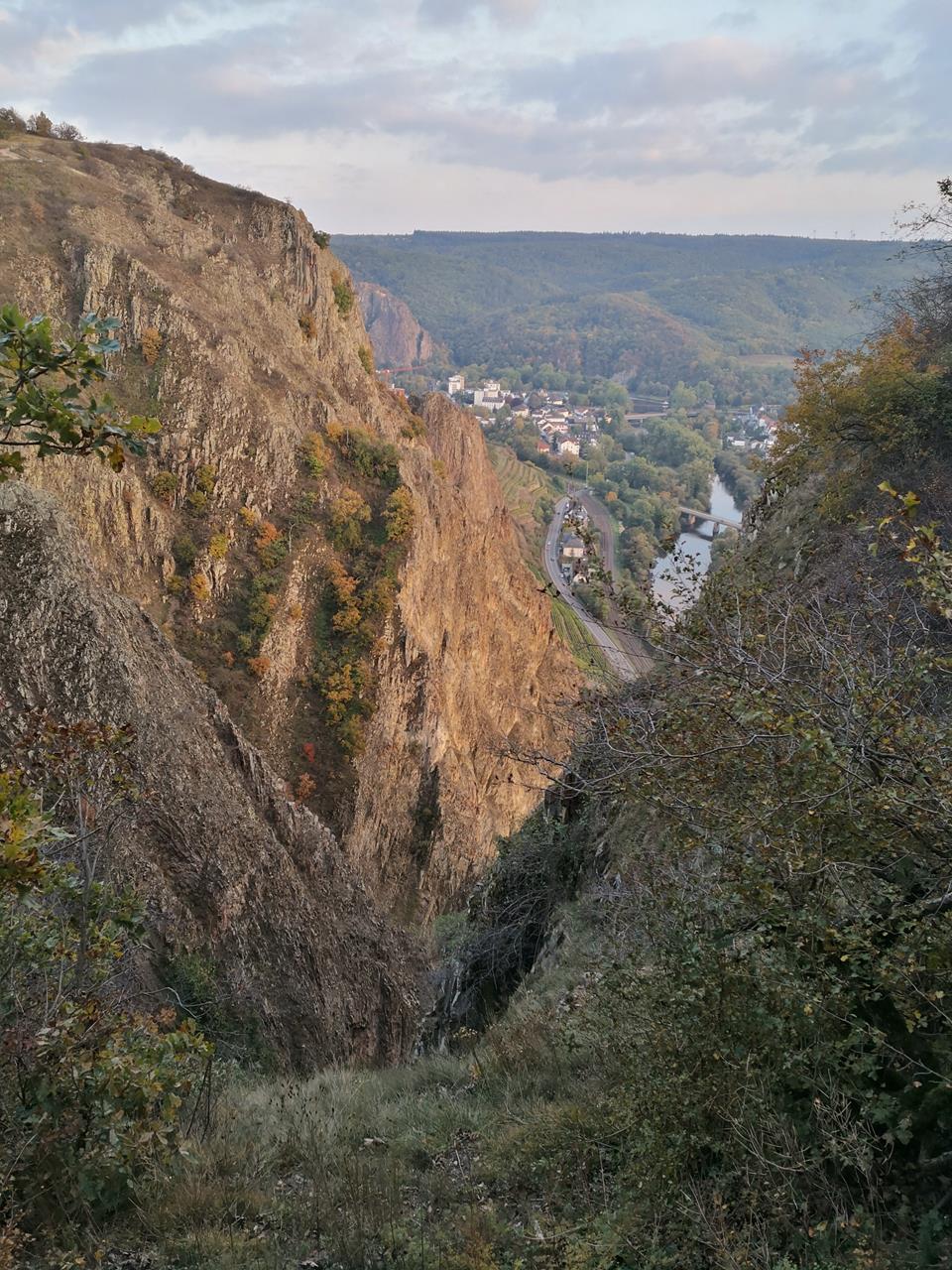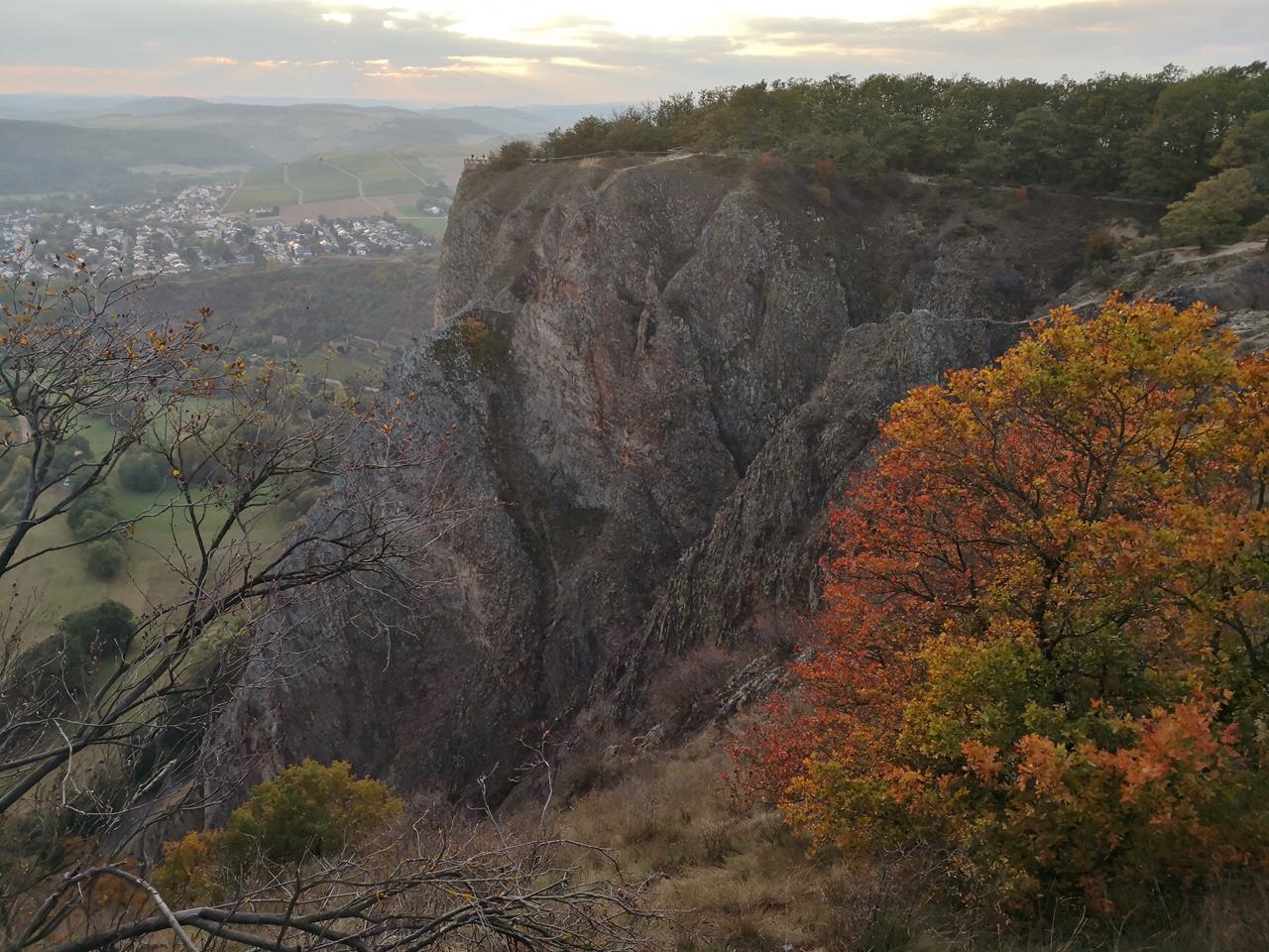 Wir beenden den Tag mit einem Aufstieg zum Rotenfels, rund 6 km südwestlich von Bad Kreuznach auf dem Gebiet der Gemeinde Traisen gegenüber von Ebernburg.