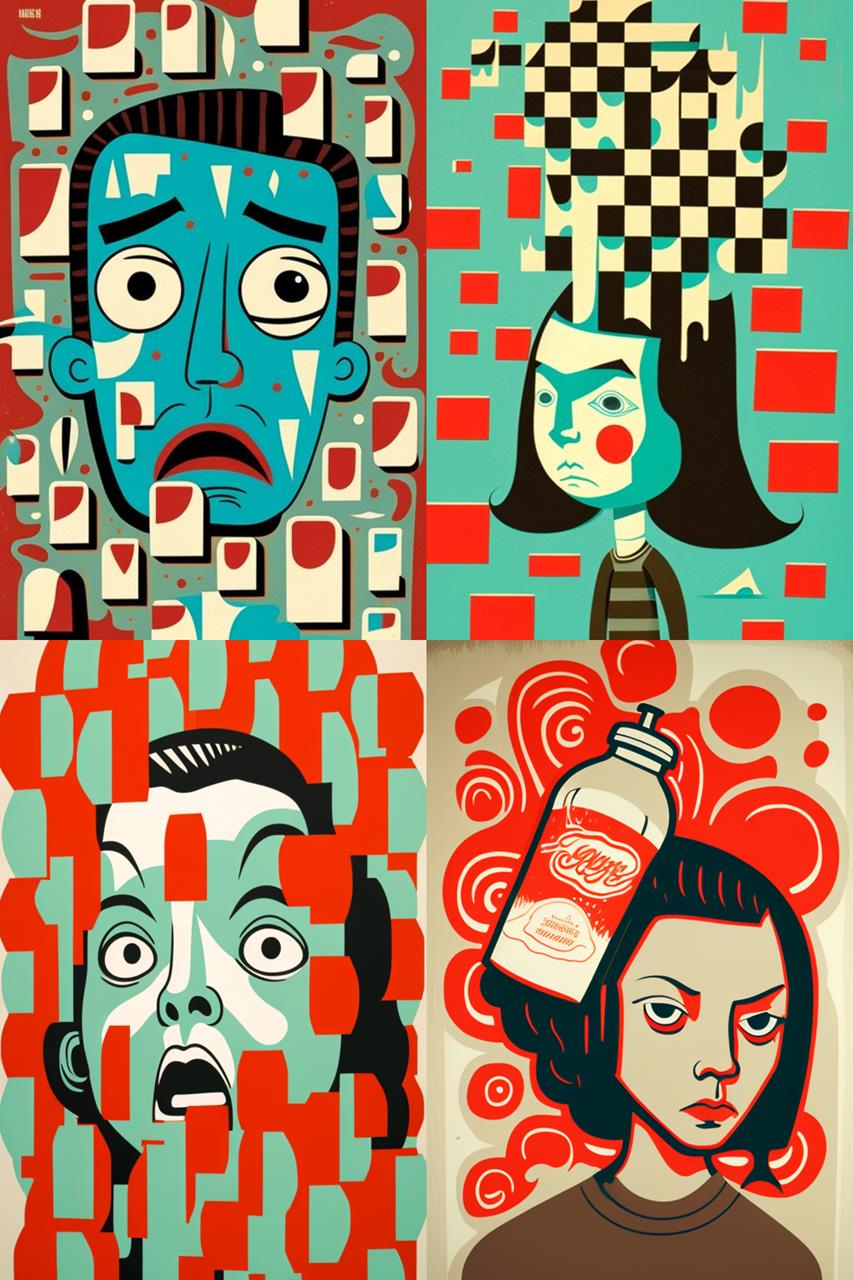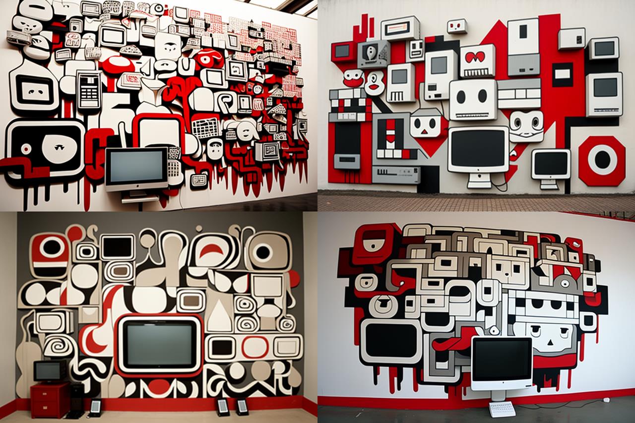 Neu aus der KI auf meiner Festplatte: Frisch generierte Kunstwerke im Stile von Barry McGee.