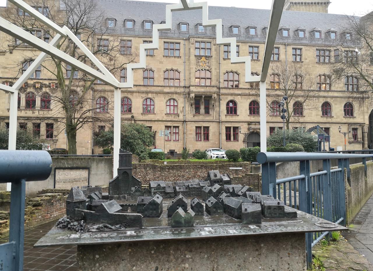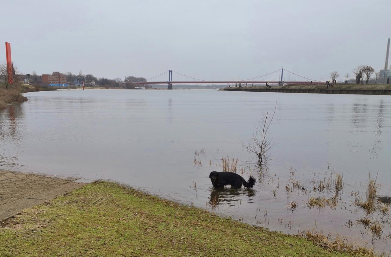 Mehr als dreißig Jahre später bin ich auf meiner ersten Wanderung im Jahr 2020 zum ersten Mal mitten im Ort des Geschehens, in der 2014 so benannten „Horst-Schimanski-Gasse“ in Duisburg Ruhrort. Mit Doxi und meiner Wanderfreundin Gabi wandere ich rund um die Mündung der Ruhr in den Rhein.Wir starten in Duisburg-Homberg und laufen auf der Westseite des Rheins mehrere Kilometer am Rande alter Industrieanlagen am Rheinufer entlang. Es ist grau, kalt und regnerisch. Winter halt, und so sind an diesem Sonntagnachmittag nur wenige Menschen draußen unterwegs.