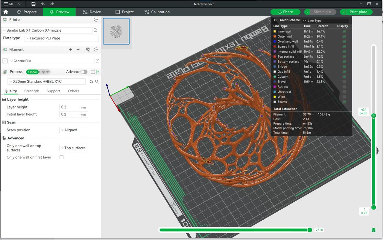 Die Tage werden schon wieder länger, aber die dunkle Jahreszeit ist noch nicht vorbei. Um meine Riesen-Teelichter im Dauereinsatz ein wenig zu verwöhnen, habe ich einen großen bionischen Teelichthalter mit meinem 3D-Drucker gedruckt.