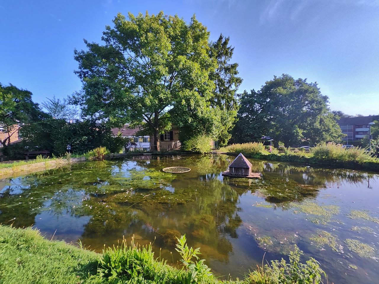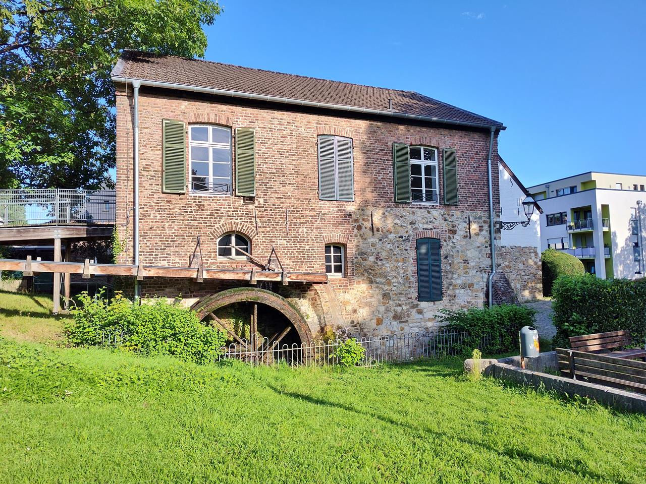 Heute gehört Haaren zu Aachen und liegt ein wenig eingezwängt im Tal des Haarbachs und der Wurm zwischen den Autobahnen A4 und A544. Vier Kilometer weiter westlich befindet sich das Zentrum von Aachen mit dem Aachener Dom.Ich erreiche zunächst die Welche Mühle aus dem 15. Jahrhundert, heute die einzige Wassermühle im Stadtgebiet von Aachen, deren Mühlrad sich noch dreht. Weiter geht es flussaufwärts durch das Tal des Haarbachs.