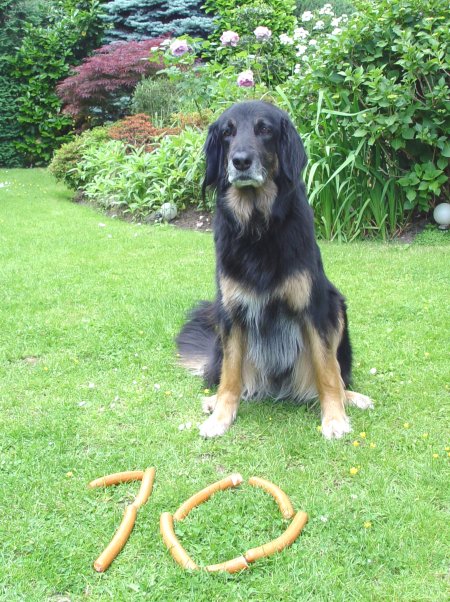 Deshalb gibt’s heute auch zehn fette Würste für dich, aber natürlich nicht alle auf einmal, denn sonst müsstest du ja mindestens acht neue Wurstverstecke im Garten graben und das wäre dann doch etwas viel Anstrengung an einem solchen Ehrentag.