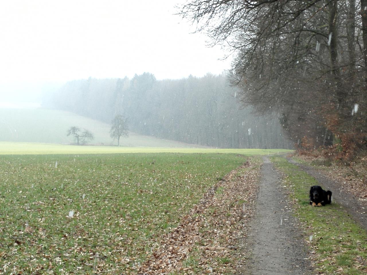 Odenwaldlandschaft im Schneegriesel