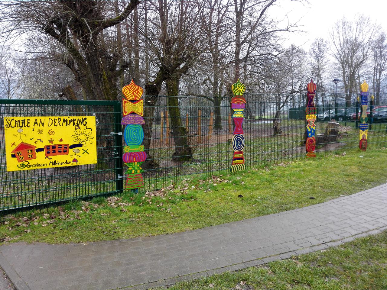 Hübsche Zaundekoration an der Grundschule in Höchst
