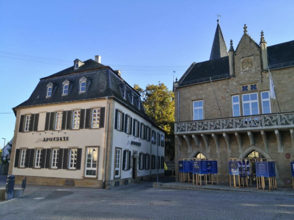 In der Innenstadt von Bad Sobernheim stoße ich auf einen spannenden architektonischen Stilmix von Spätmittelalter über Klassizismus bis zu Gründerzeit und Moderne. Die Innenstadt erweckt den Eindruck, als hätte sie schon einmal bessere Zeiten gesehen. Viele Geschäfte stehen leer.