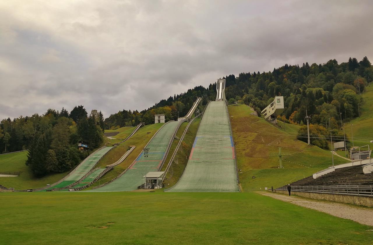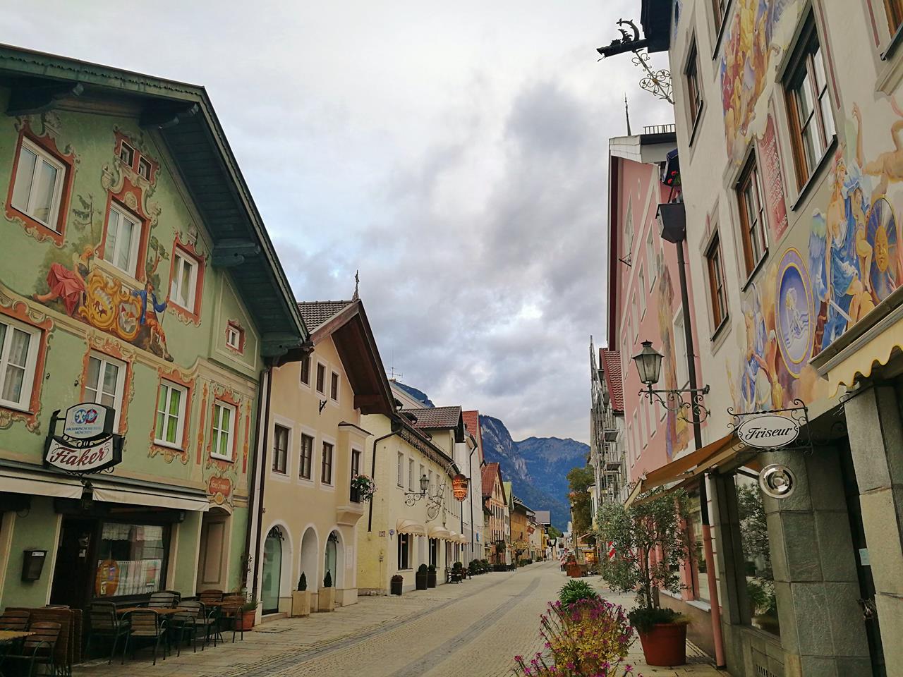 Wie schon in Oberammergau springen mir die vielen Häuser mit Lüftlmalerei ins Auge, außerdem die große Olympiaschanze, die sich weithin sichtbar über dem Ort erhebt. Man spürt, dass Garmisch vom Tourismus lebt. Jetzt, am Nachmittag, ist in der Einkaufsstraße richtig viel los.