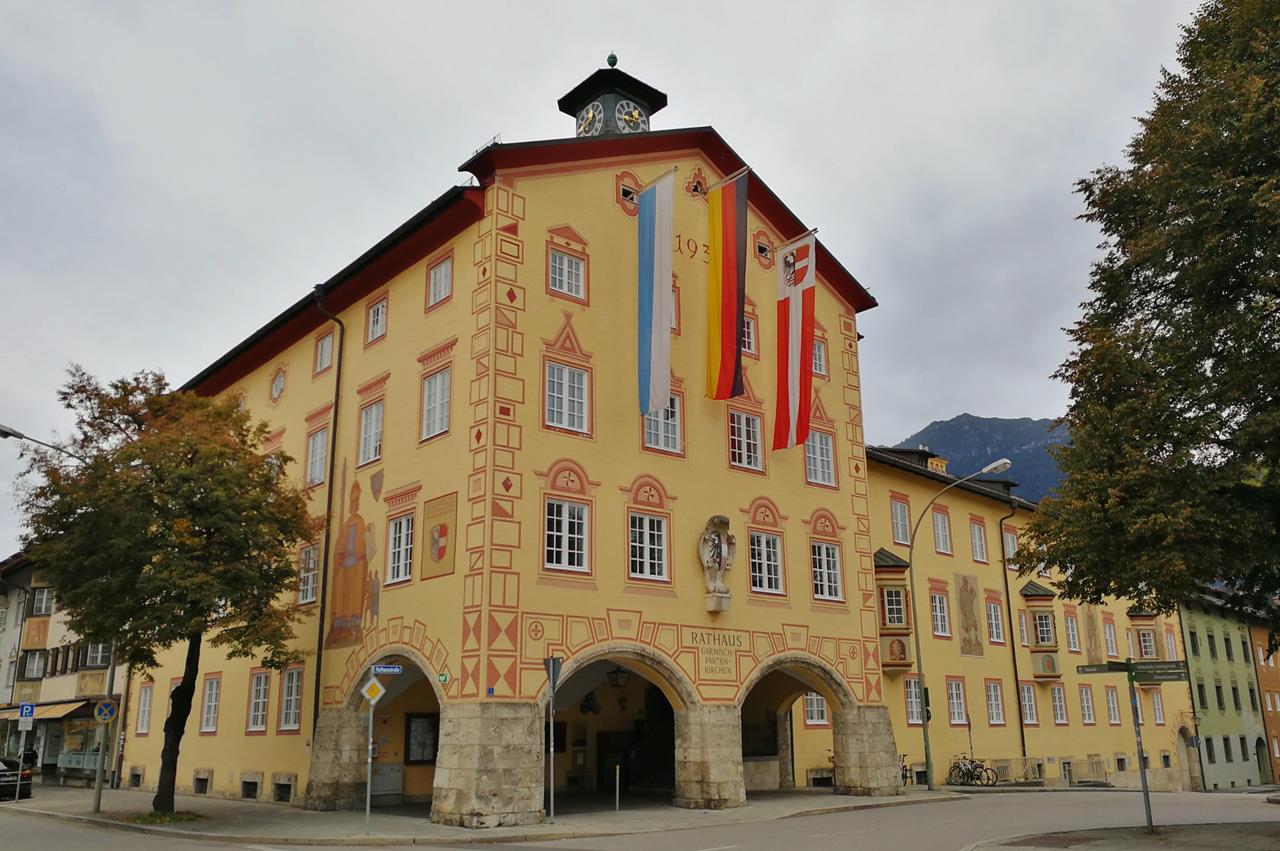 Das anlässlich der Zusammenlegung der Gemeinden Garmisch und Partenkirchen im Jahr 1935 errichtete Rathaus im Ortsteil Partenkirchen