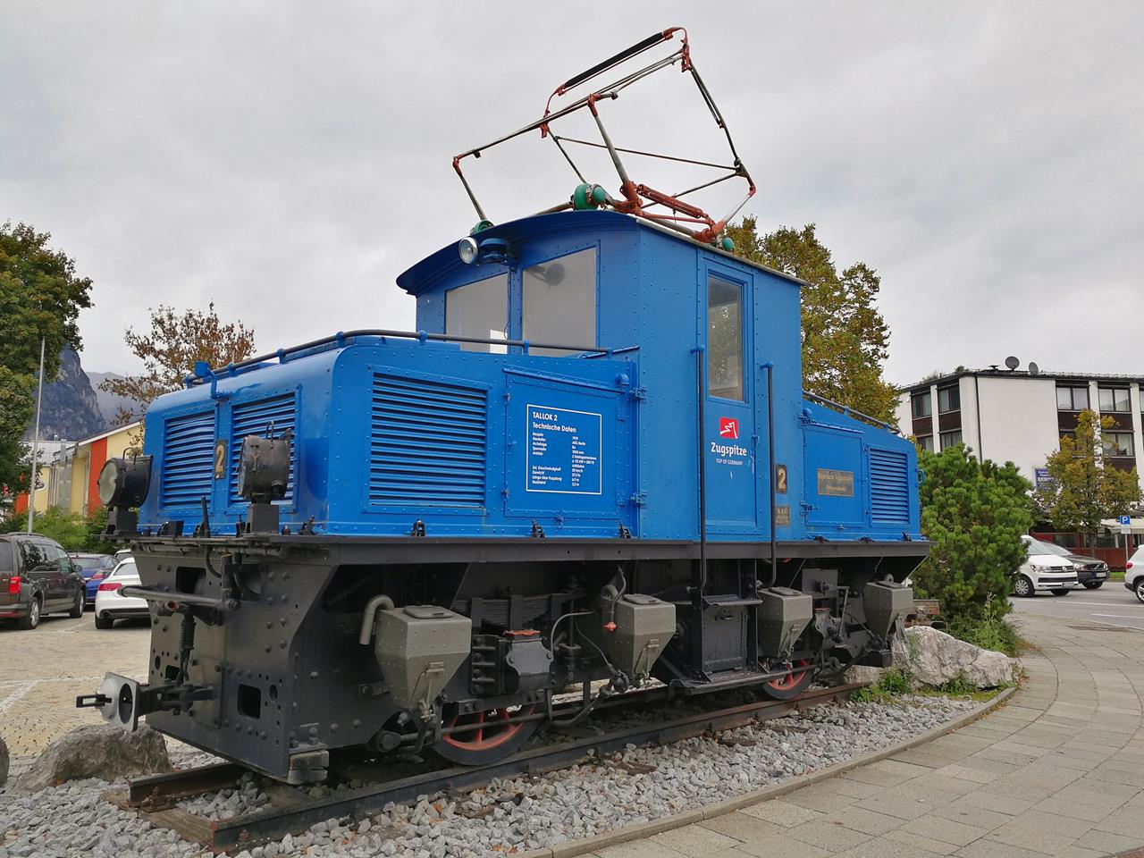Ehemalige Lokomotive der Zugspitz-Bahn vor dem Rathaus
