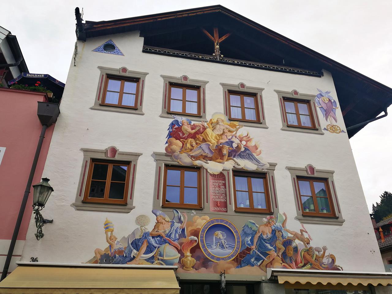 Überall begegnen mir Häuser mit Lüftlmalerei