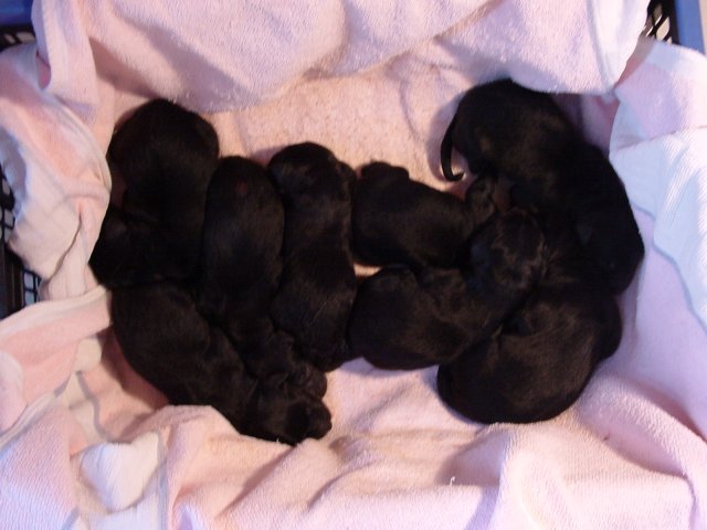 Wenn Mutti mal nicht da ist …. liegen die Welpen mal in Reih und Glied, mal sternförmig oder auch ganz anders.