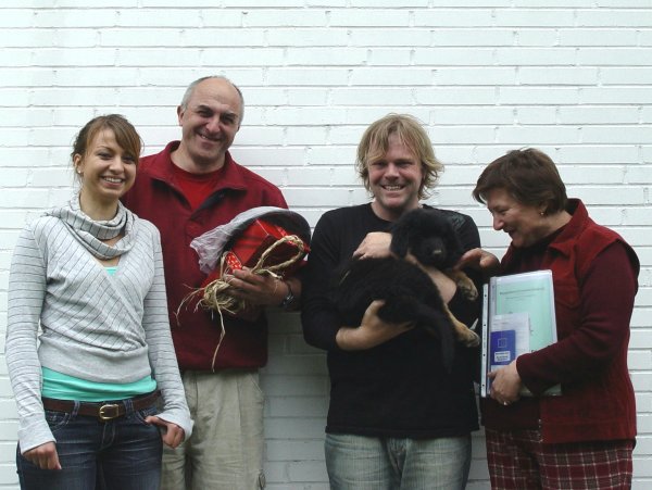 Unterwegs hat er sich mehrmals auf den Boden geworfen und richtig schön im Dreck gewälzt. Die Fotos zeigen das Ergebnis. Nach dem Abtrocknen und Kämmen war aber schnell wieder alles o.k.