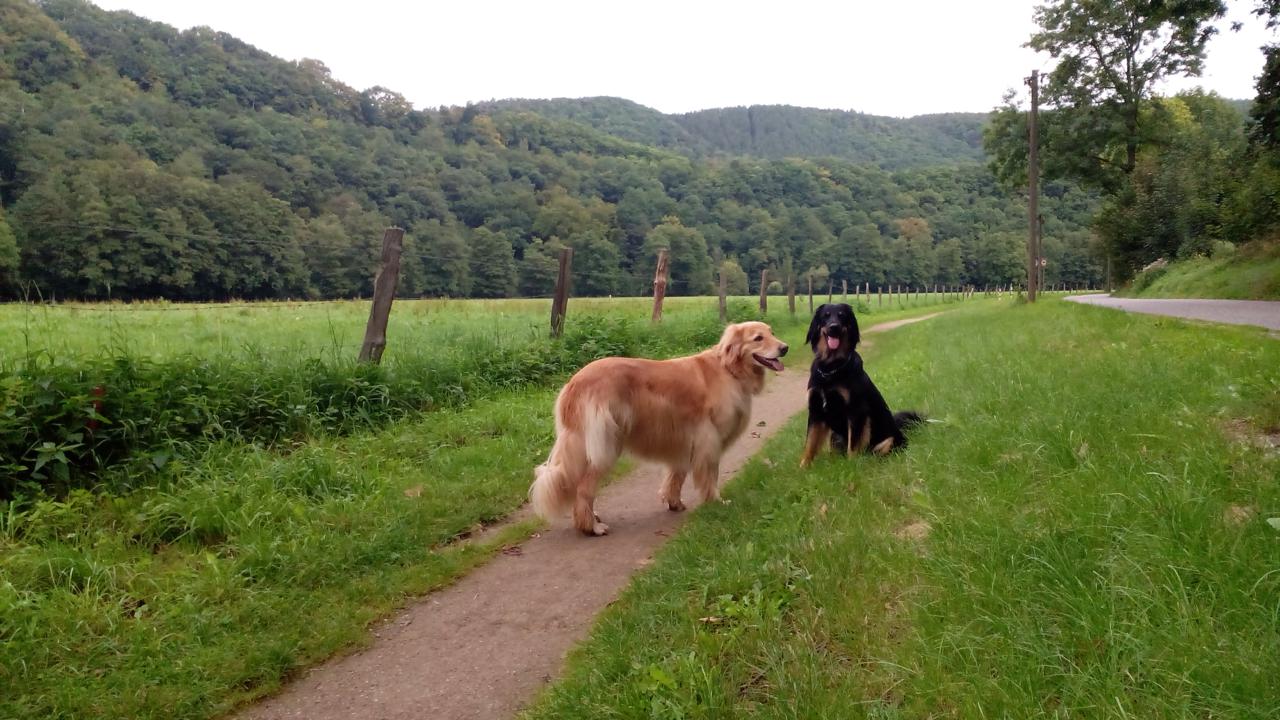 Über einen schmalen Pfad entlang des Mühlenbaches erreichten wir wieder unseren Ausgangspunkt. Uns und den Hunden hat diese Tour sehr gut gefallen.