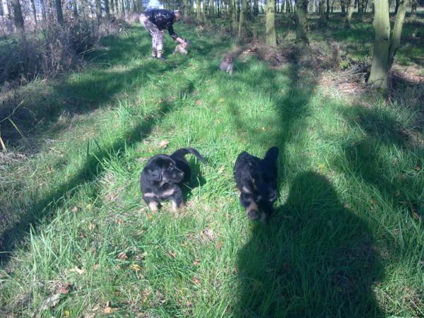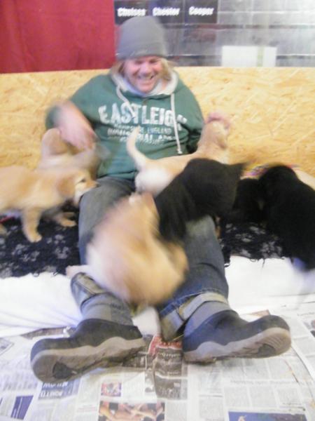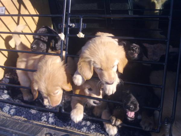 Mittlerweile krabbeln die Welpen regelmäßig in den Pappkarton, den wir für sie als Höhle vorbereitet und neben die Tür zur Garage gestellt haben. Der Karton selbst ist gar nicht so groß, deshalb mussten wir lachen, als plötzlich fünf Welpen herauskrochen. Scheint ihnen darin zu gefallen ….