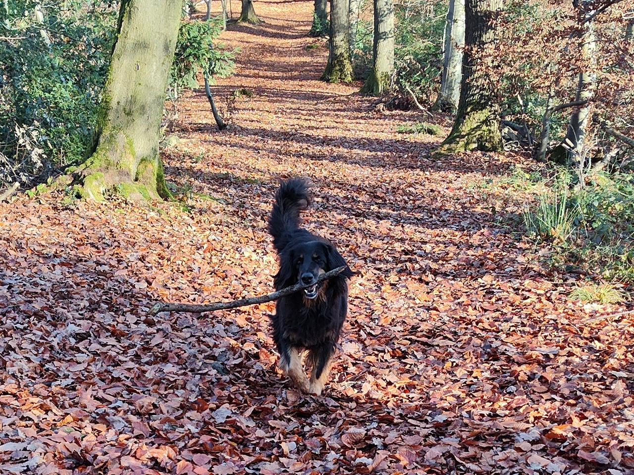 Eine Woche nach ihrer Zahn-OP (14 Zähne gezogen) zeigte sie wieder Bereitschaft, mit uns auf kleinen Runden durchs Dorf zu laufen. Weitere zehn Tage später konnten wir bereits sieben Kilometer mit ihr wandern, ohne dass sie Schwäche oder Unwillen erkennen ließ. Im Gegenteil: Die meiste Zeit ist sie vorausgelaufen, hat sogar mal ein Stöckchen aufgenommen. Was für eine Wendung.