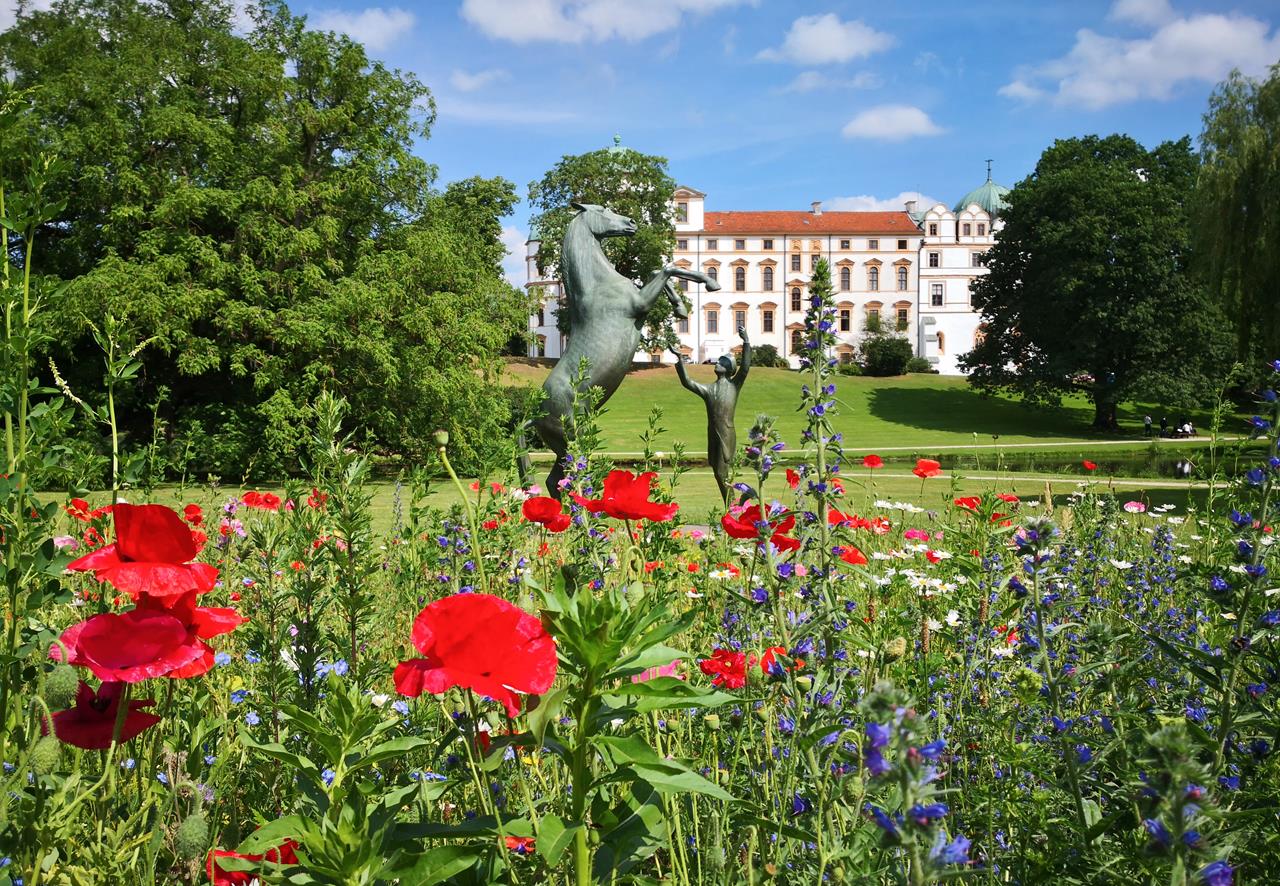 Blick aus dem Schlosspark auf das Schloss Celle