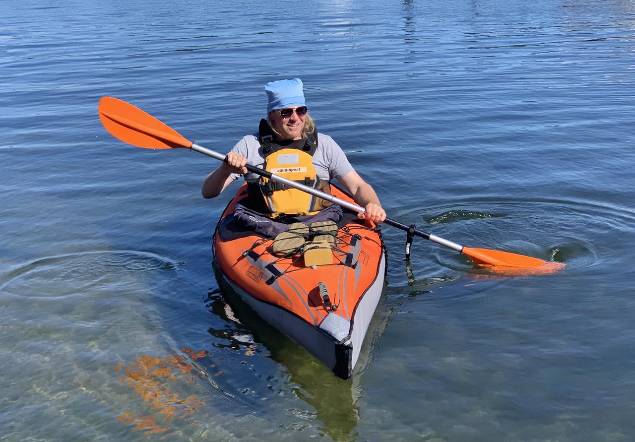 Am Nachmittag baue ich mein Faltboot auf und gehe auf dem See paddeln