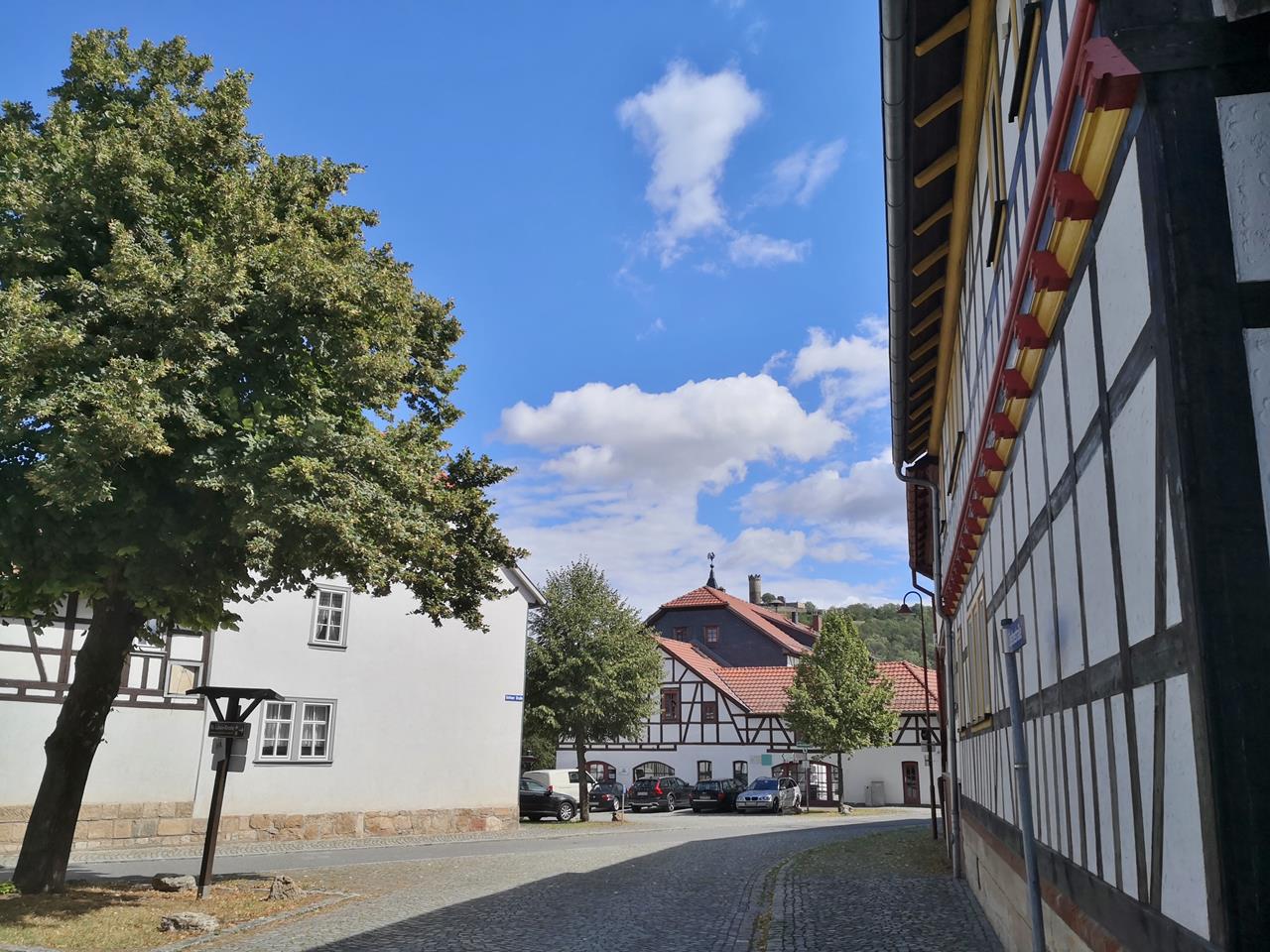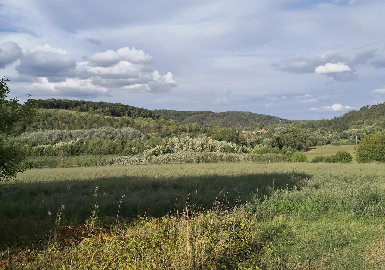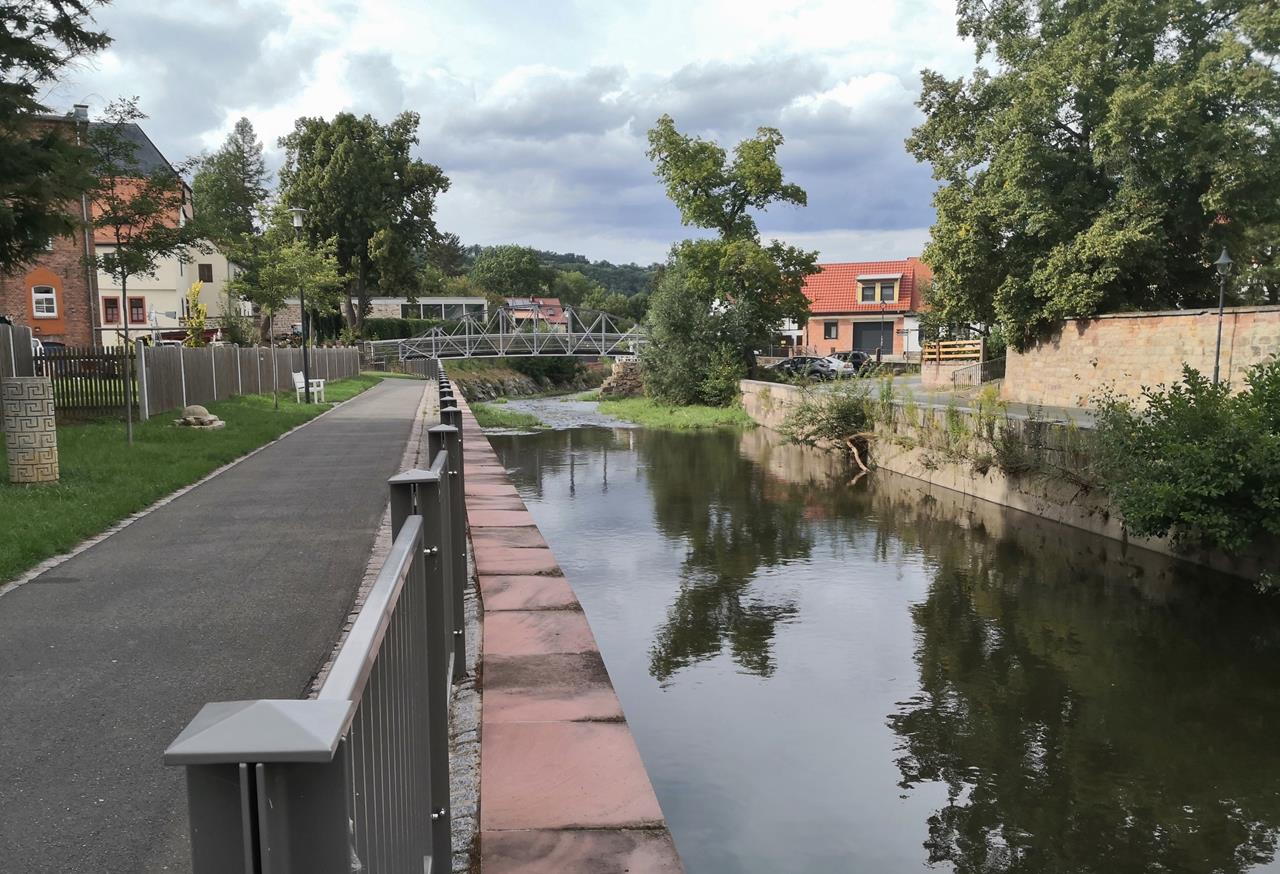 Talabwärts geht es weiter in Richtung Rudolstadt zum hübschen Ort Schaala mit seiner Wehrkirche, die tatsächlich wie eine kleine Burg wirkt. Am Rande des Pötzbergs laufen wir alsbald bis zum Ort Mörla.