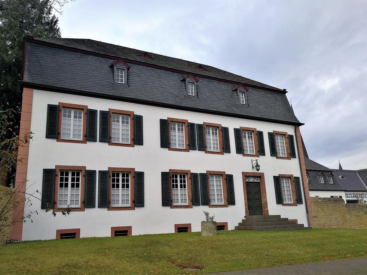Dann steigen wir auf die Fischbachhöhe auf, deren Fläche landwirtschaftlich genutzt wird. Außerdem ist hier ein Neubau des Gestüts Schlenderhan angesiedelt, dem ältesten privaten Rennstall in Deutschland. Wir überqueren die mehr als drei Kilometer lange Hochfläche und steigen anschließend wieder zur Bahnstrecke zwischen der Glessener Höhe und der Fischbachhöhe hinab.