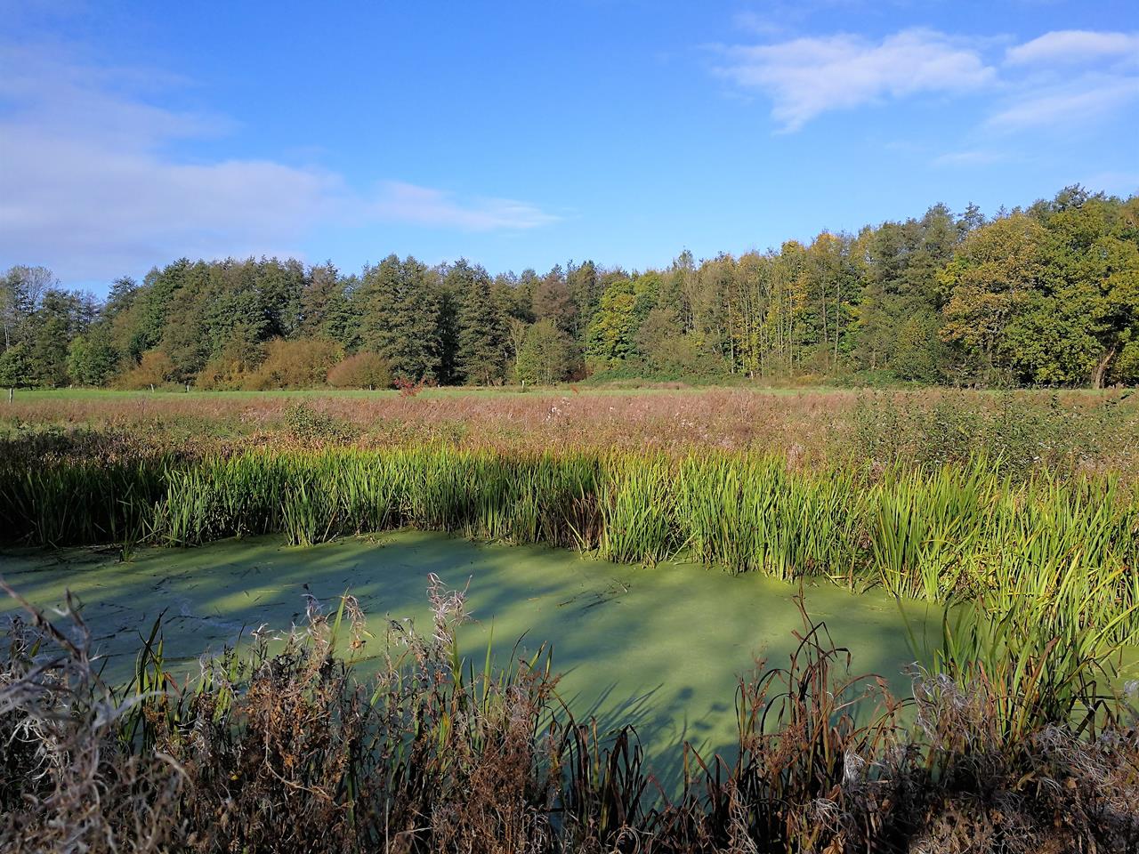 Hinter dem Park erstreckt sich der „Schlosswald“, ein großer Mischwald, den wir in südlicher Richtung durchwandern. Dann geht es nach Norden am Stadtteil Herten-Resse vorbei und über freies Feld nach Westen in Richtung auf Schalke-Buer.