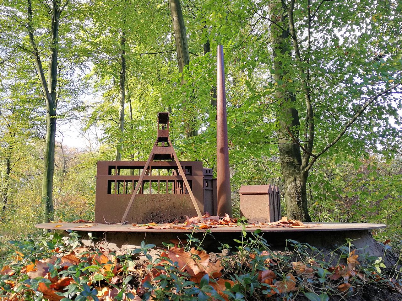 Unserer Route dreht nun Richtung Südosten ab. Nach einigen Kilometern erreichen wir am tiefsten Punkt der Tour einen ehemaligen Bergwerksstollen mitten im Wald. Der Eingang ist vergittert, dahinter wacht eine goldene Marienstatue. Von nun an geht es stetig bergauf, bis wir nach 14 Kilometern wieder unseren Startpunkt bei „Mutter Wehner“ erreichen.