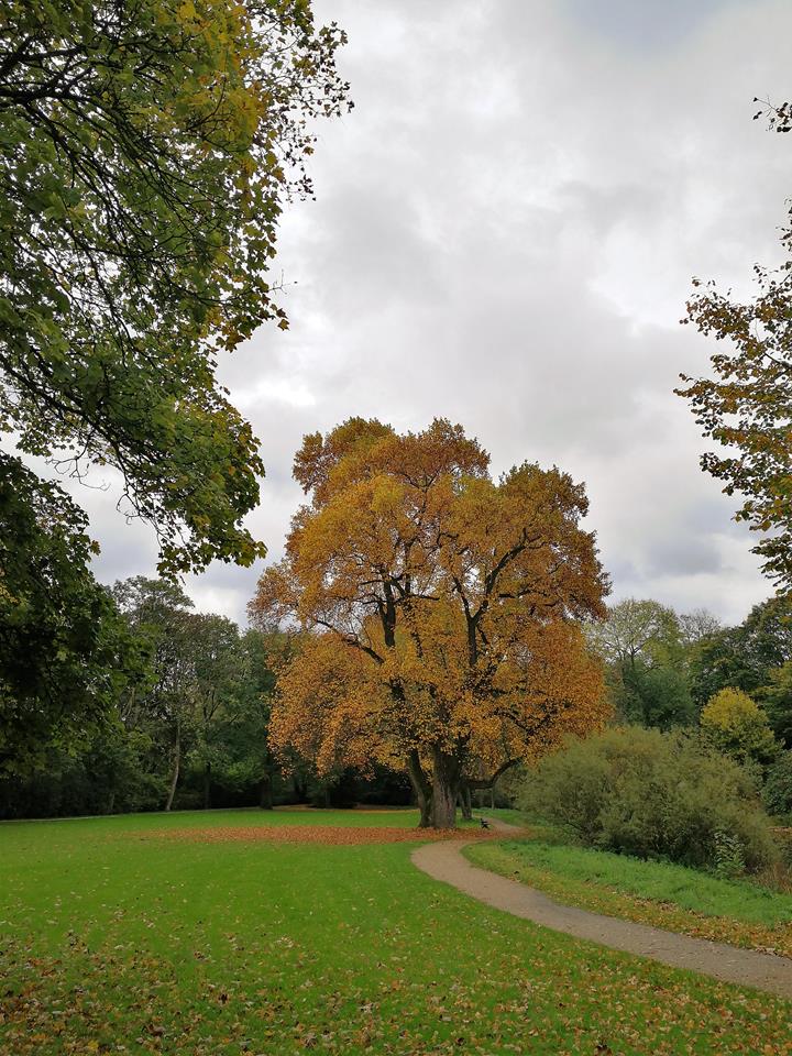 Wir überqueren die Staumauer und laufen anschließend durch schönen Mischwald stetig nordwärts. Unter unseren Füßen knistert das Laub, doch mir fällt auf, dass viele Laubbäume im Vergleich zu anderen Eifelwäldern hier noch erstaunlich grün sind.