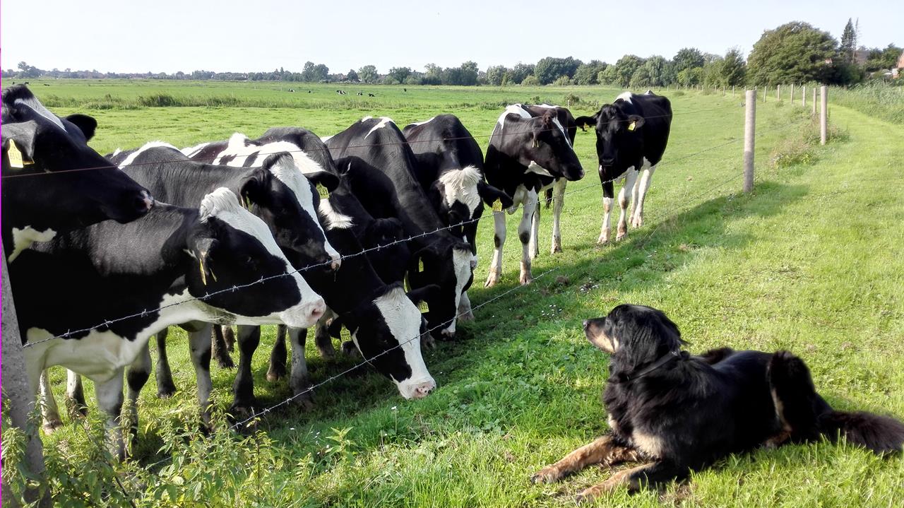 Also setzen wir uns wieder mit dem Womo in Bewegung und halten Ausschau nach einem Aussichtspunkt. Schon nach wenigen Minuten erscheint ein entsprechendes Hinweisschild. Über schmale Straßen fahren wir an den Deich heran.Die Infotafel am Parkplatz ist noch auf Deutsch gehalten, doch als wir wenige Meter weiter den Deich erklimmen, sind die Schilder bereits alle in niederländischer Sprache. Offensichtlich haben wir unbemerkt die Landesgrenze überschritten.
