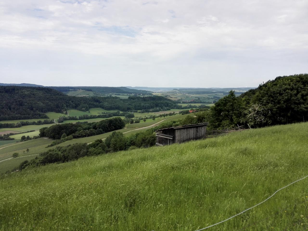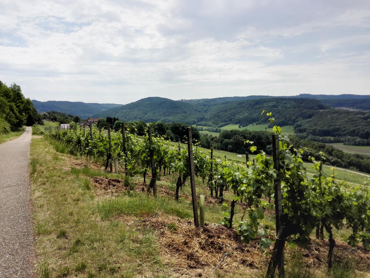 Am Abend laufe ich mit Doxi von Pfedelbach ins zwei Kilometer entfernte Öhringen. Schon von weitem sind die Türme der evangelischen Pfarrkirche auszumachen, die ich im Zentrum der großen Kreisstadt vermute. Das ist unsere Zielrichtung.