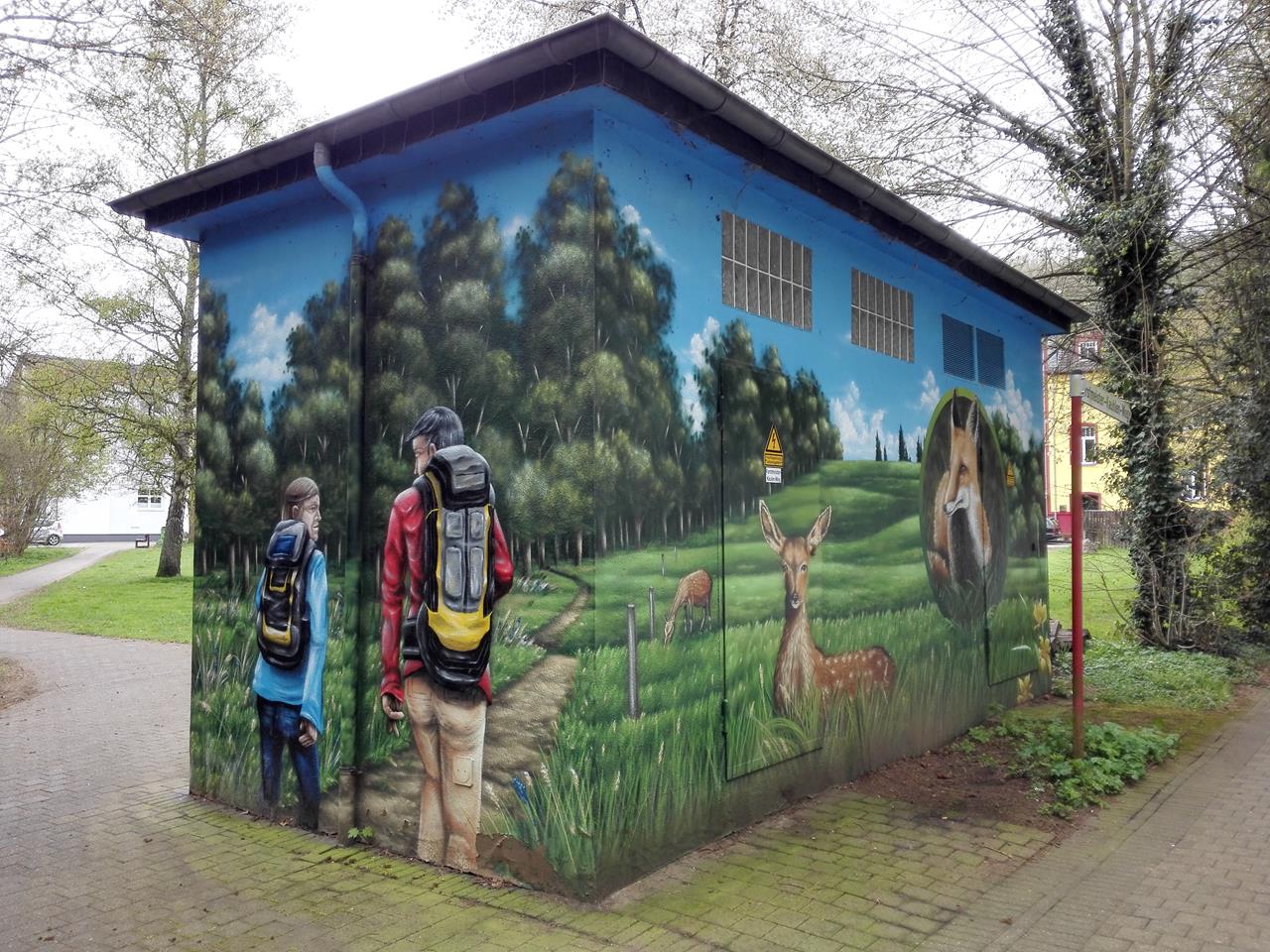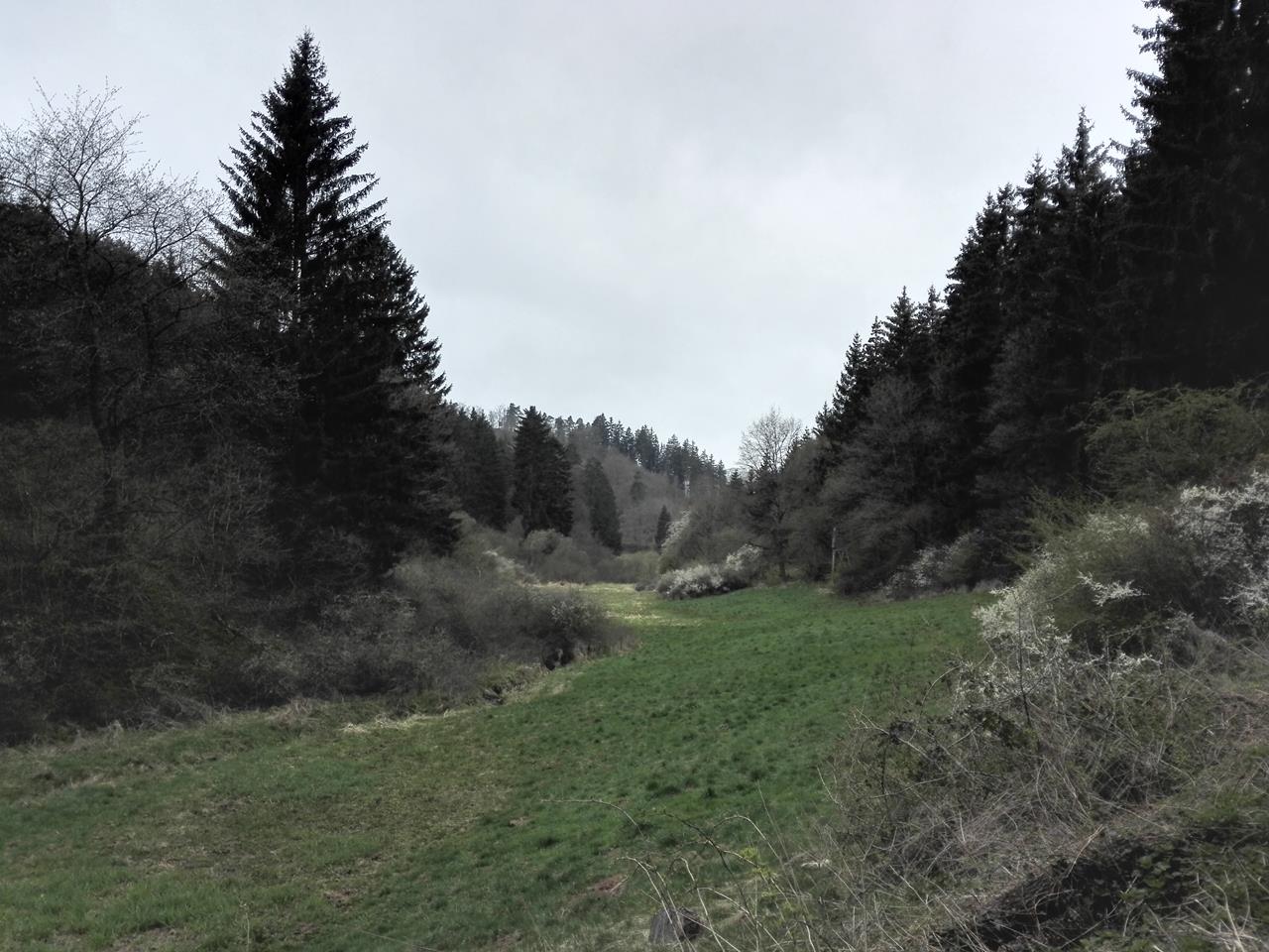 Wir steigen durch schöne Täler hinab nach Herschbroich und müssen dann noch zwei Kilometer entlang der Landstraße zurück nach Adenau laufen. Dort begegnen wir wieder den unglaublichen Massen von Motorrad- und Sportwagenfahrern. Jedem das Seine, denke ich, aber Doxi meint auch: lieber schnell weg hier. Das ist uns einfach alles zu laut 😉