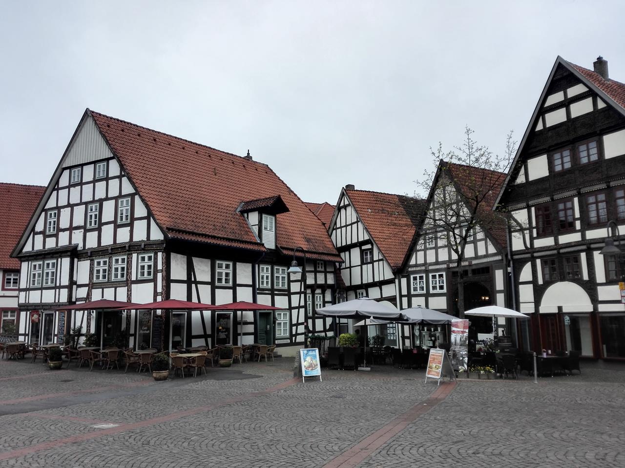 Am Vormittag waren wir bei trübem Wetter in Bad Salzuflen unterwegs, am Nachmitttag lacht uns im nur zehn Kilometer entfernten Herford schon wieder die Sonne an. Wir stehen mit dem Womo auf einem kostenlosen Parkplatz an den Sportanlagen im Süden der Stadt.
