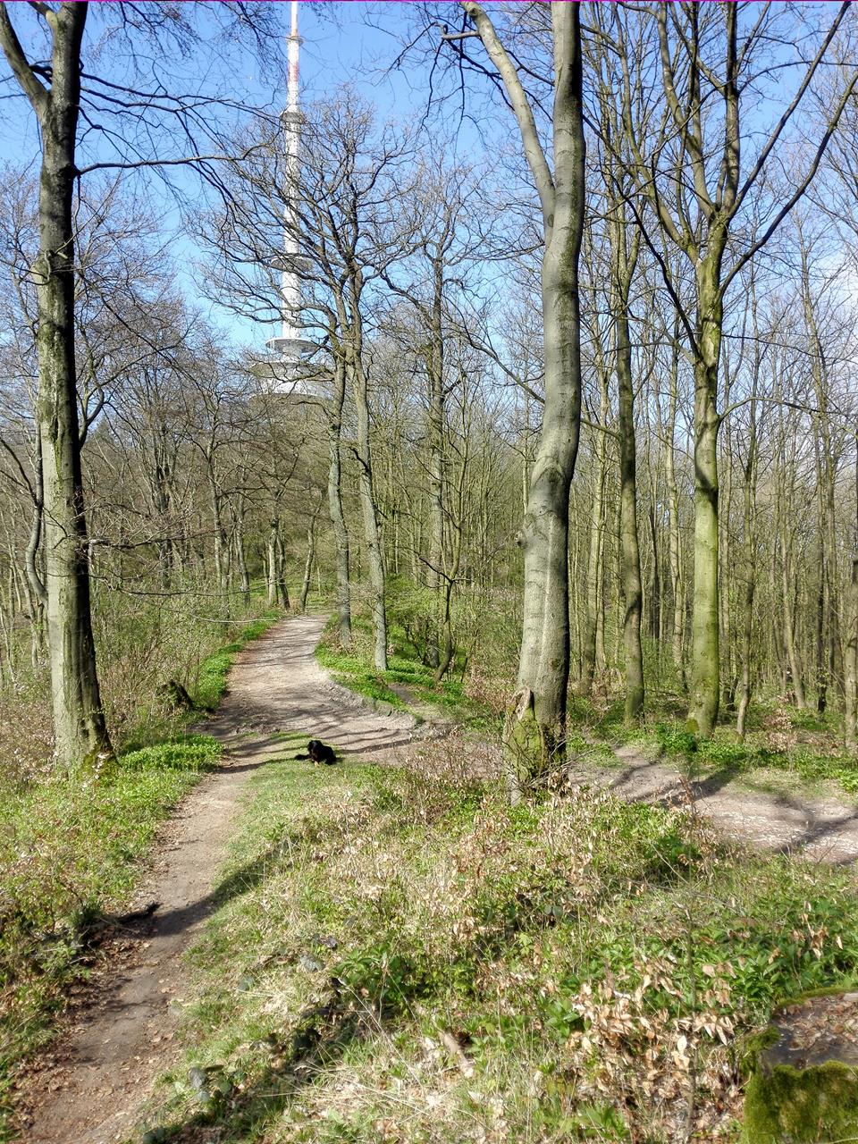 Am Abend wandere ich dann noch mit Doxi hinauf zum Bismarckturm im Stadtwald zwischen Herford und Bald Salzuflen. Vom Waldrand hat man im Abendlicht einen wunderbaren Blick über Herford in das Ravensberger Hügelland und hinüber zum Teutoburger Wald. So eine schöne Abendwanderung, das lasse ich mir gefallen.