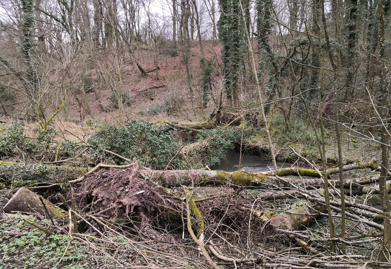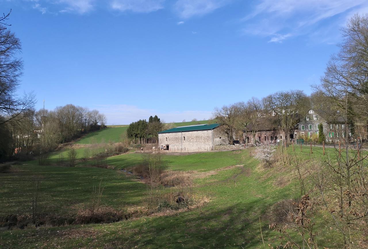 Nach der Ortsdurchquerung laufen wir an der Kasterer Mühlenerft, einem Seitenarm der Erft, und am blau schimmernden Kasterer See entlang. Dann steigen wir auf die Kasterer Höhe auf, die durch die Aufschüttung des Abraums aus dem angrenzenden Tagebau entstanden ist. Mehrere Siedlungen und sogar das altehrwürdige Schloss Harff mit seinem riesigen Tierpark und Englischem Landschaftsgarten mussten dafür weichen.