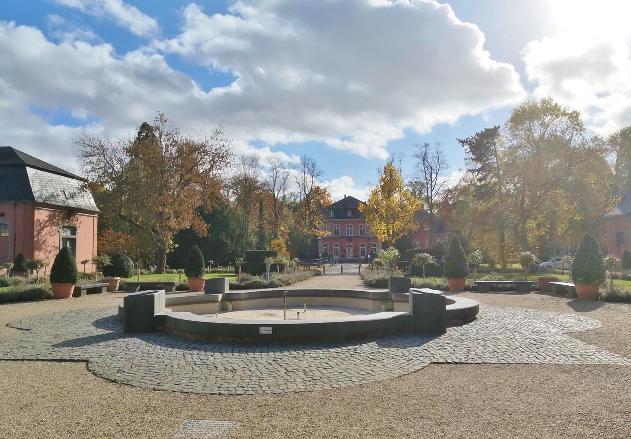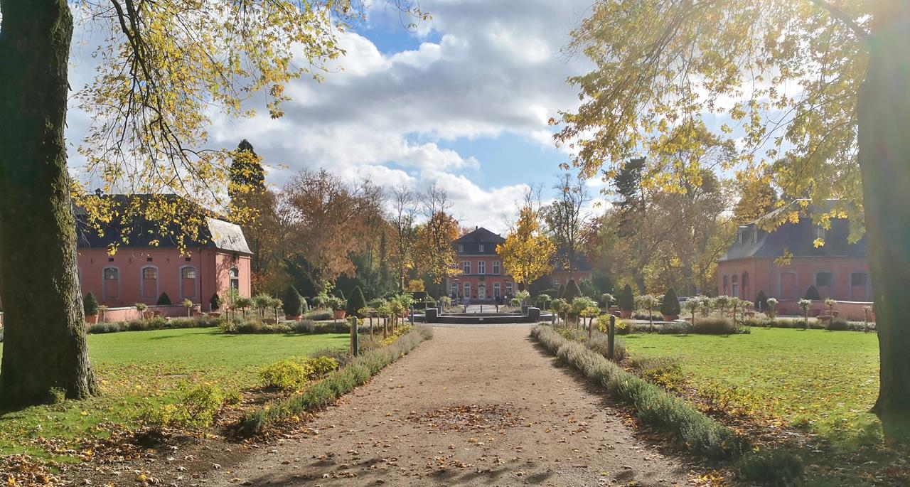 Panoramabild von der Hauptachse im Park von Schloss Wickrath