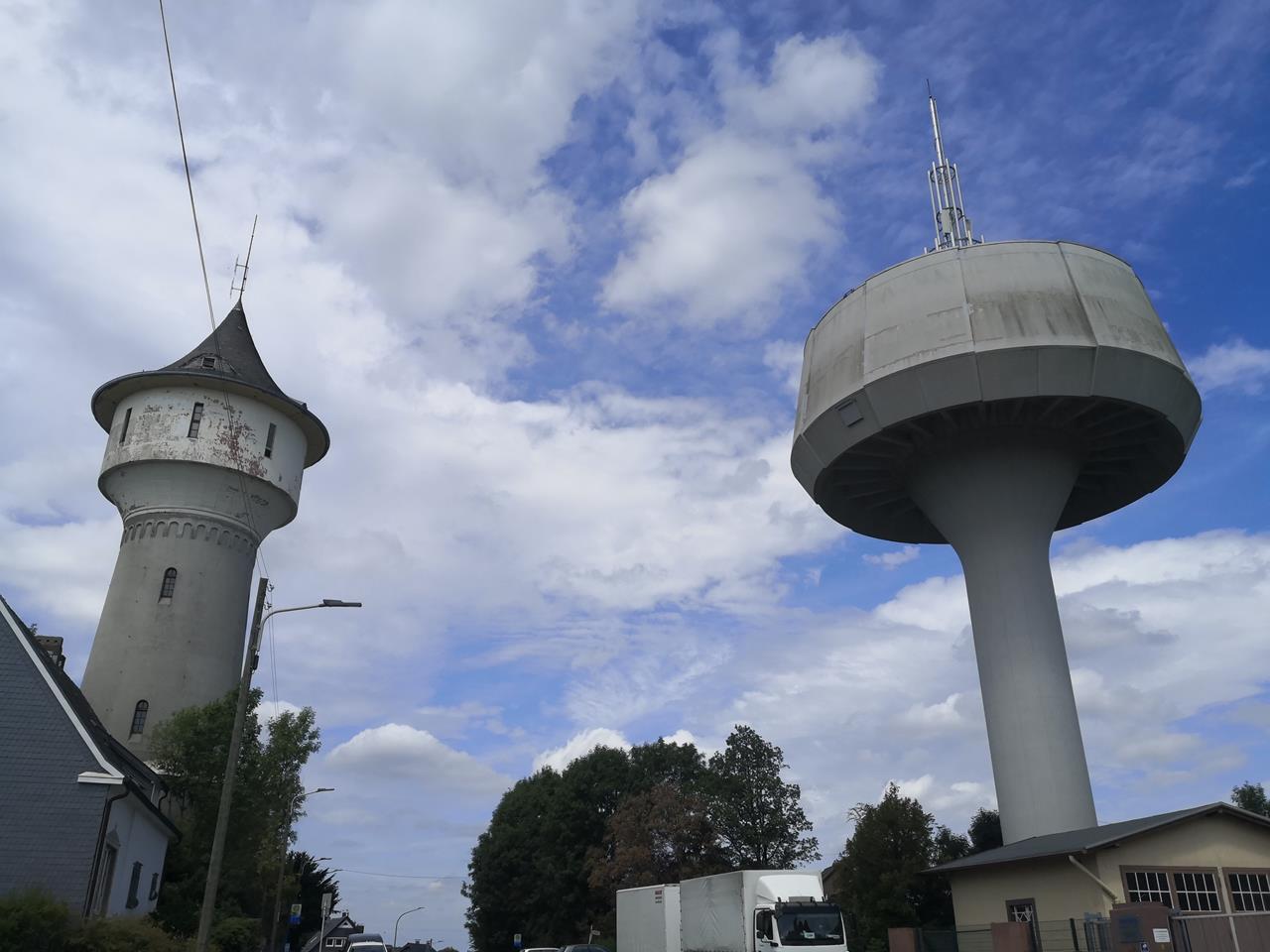 Bei der Rückfahrt kommen wir an den beiden markanten Wassertürmen vorbei: Links der alte aus dem 19. Jahrhundert, rechts der moderne