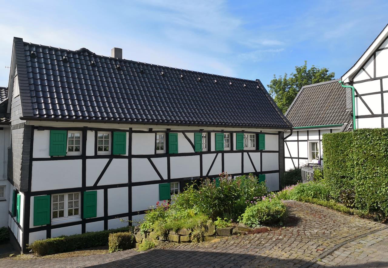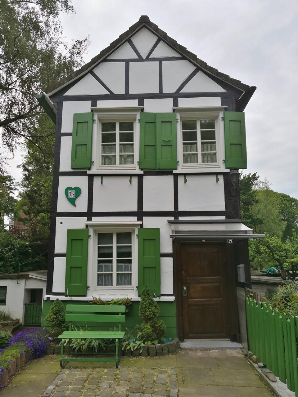 In den Passagen durch die Wohngebiete am Rande des Stadtzentrums zeigt sich ein interessanter Stilmix in der Bebauung: Hier kleine Häuslein im typisch Bergischen Stil mit weißen Tür- und Fensterrahmen, umgeben von grünen Läden, dort großzügige Stadtvillen im klassizistischen Stil aus der Gründerzeit zwischen 1870 und 1910, als Solingen wirtschaftlich aufblühte.
