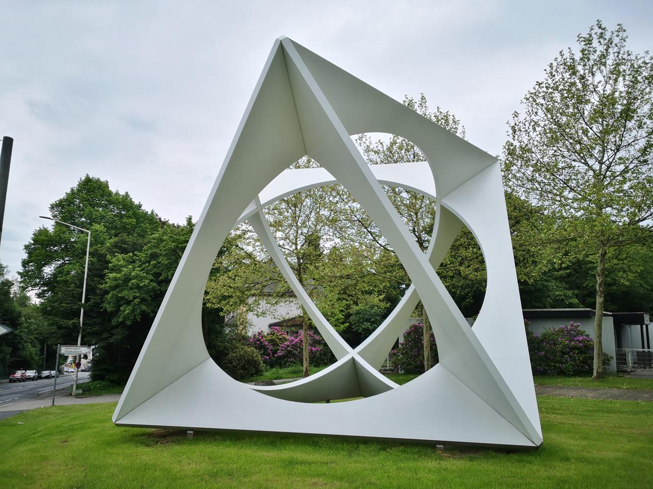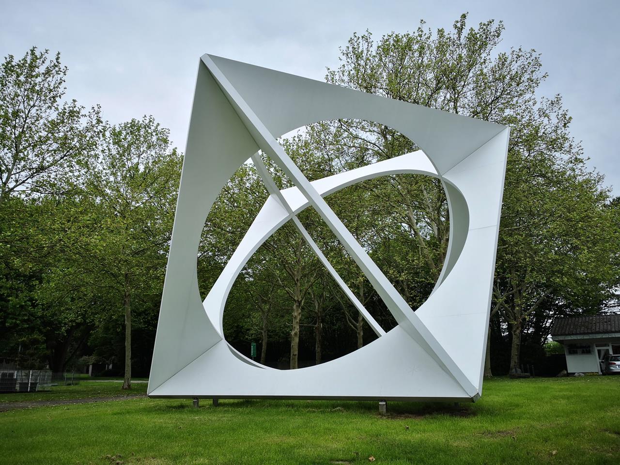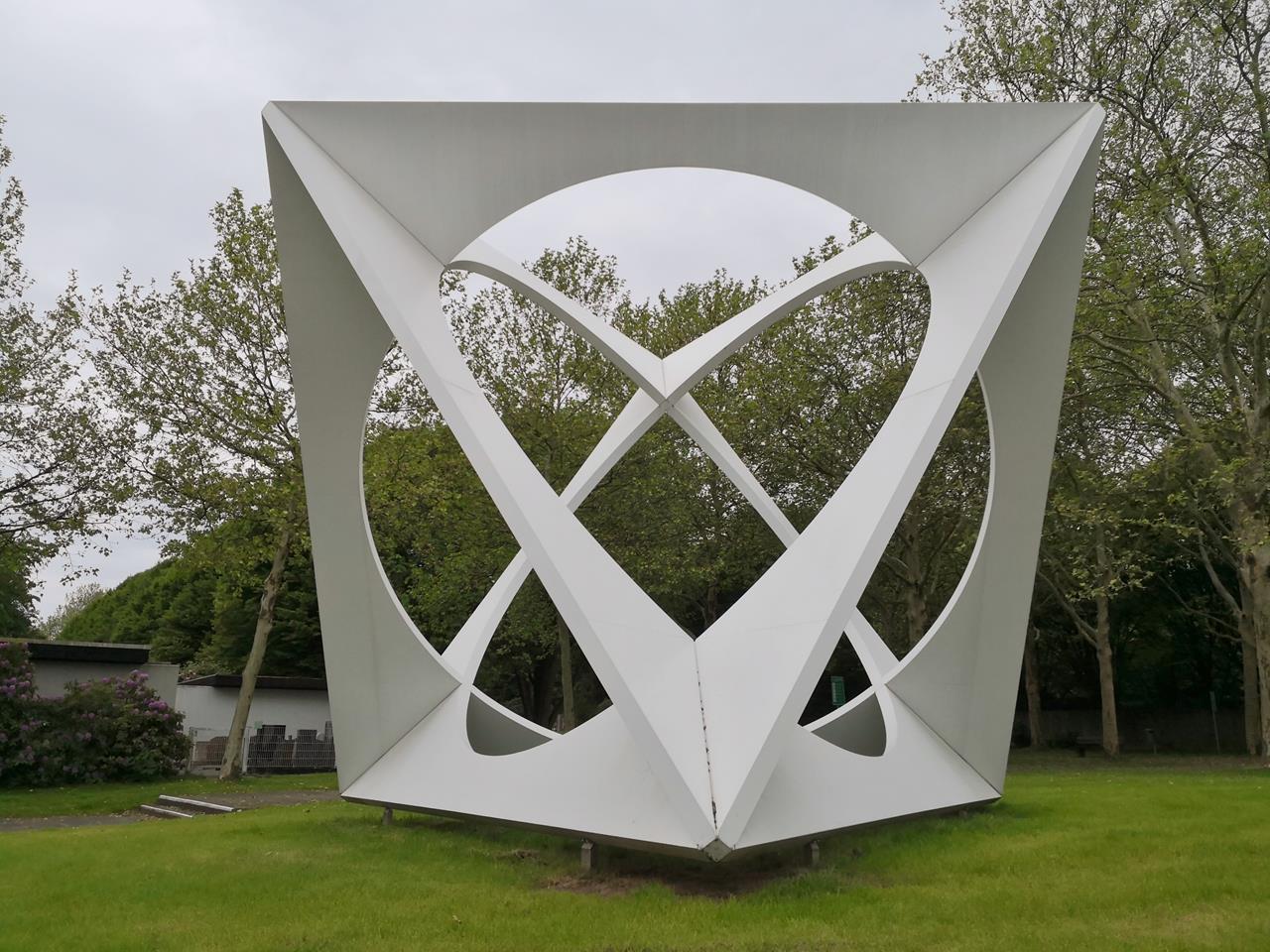 Das Kunstwerk von Prof. Wolfang Körber zwischen dem Kunstmuseum und dem Parkfriedhof sieht aus jeder Persepektive unterschiedlich aus