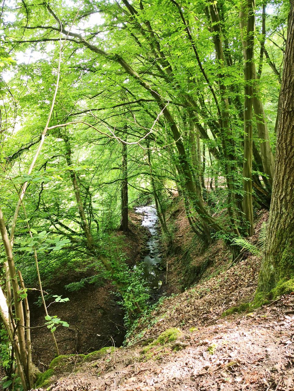 Links und rechts des Katternbergs erstrecken sich in der dicht besiedelten Region Wohn- und Industriegebiete. Doch obwohl das Naturschutzgebiet entlang der beiden Bäche stellenweise weniger als dreihundert Meter breit ist, bekommt man davon nichts mit. Man hat tatsächlich das Gefühl, in einem ausgedehnten Waldgebiet unterwegs zu sein. Erst aus der Vogelperspektive wird der schmale Grüngürtel als solcher erkenntlich.