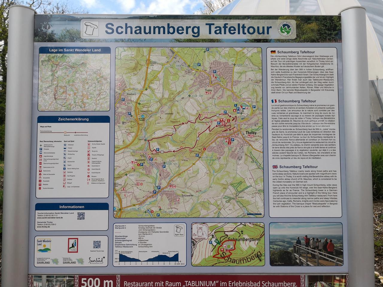Nach unserem Besuch in Schengen fahren wir am Nachmittag weiter über Saarlouis, Dillingen und St. Wendel ins nördliche Saarland nach Tholey. Unser Ziel ist der Schaumbergturm auf dem Gipfel des Schaumbergs. Der Berg gilt als „Hausberg des Saarlands“, weil er der höchste Berg des ehemaligen Saargebietes war.