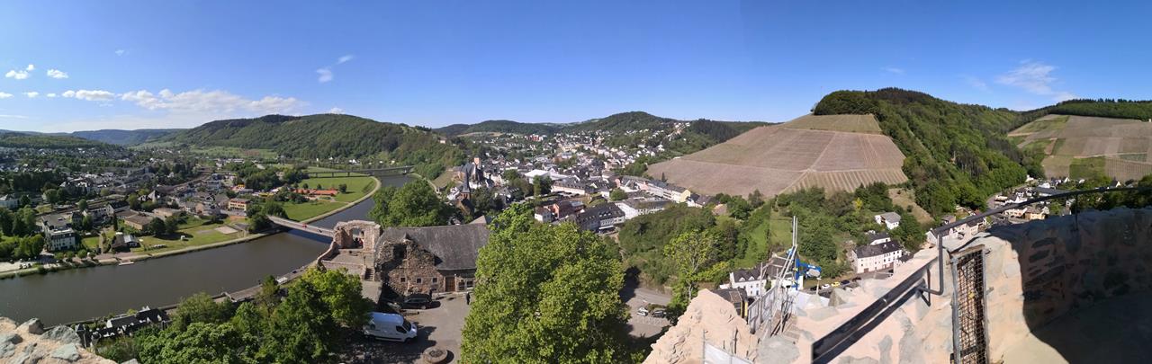 Panoramabild von der Spitze des Bergfrieds der Saarburg
