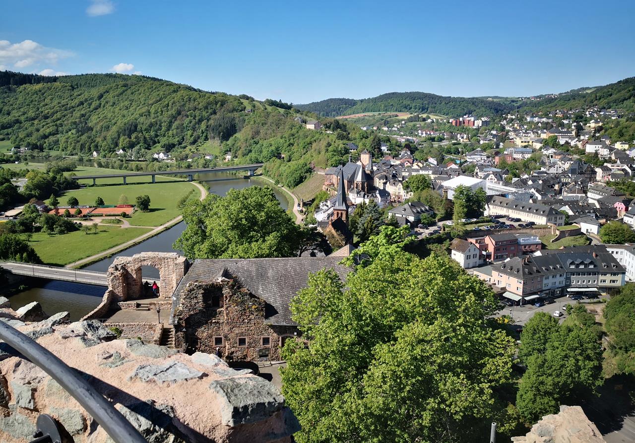 Blick von der Spitze des Bergfrieds der Saarburg auf die nördlichen Stadtteile