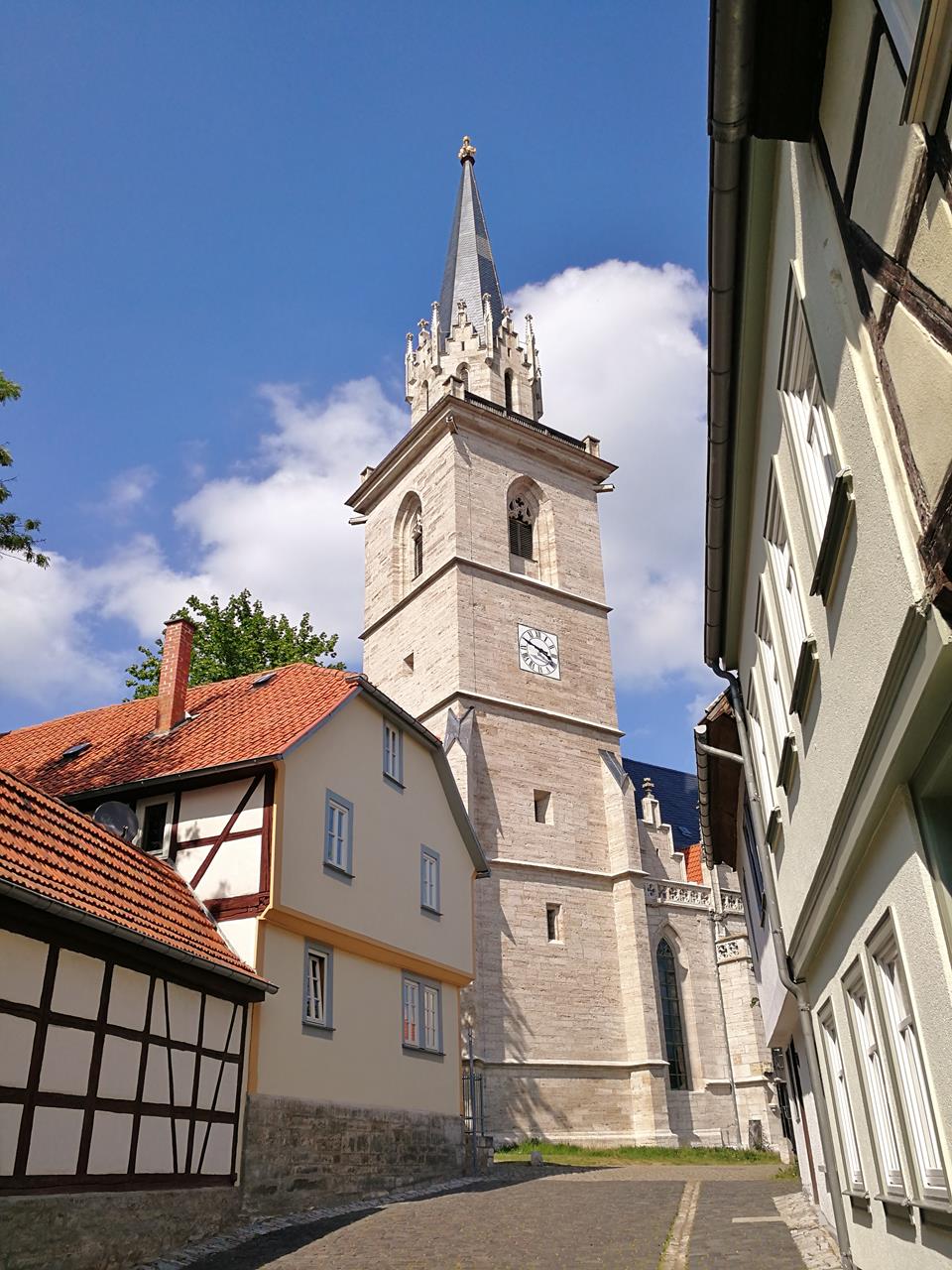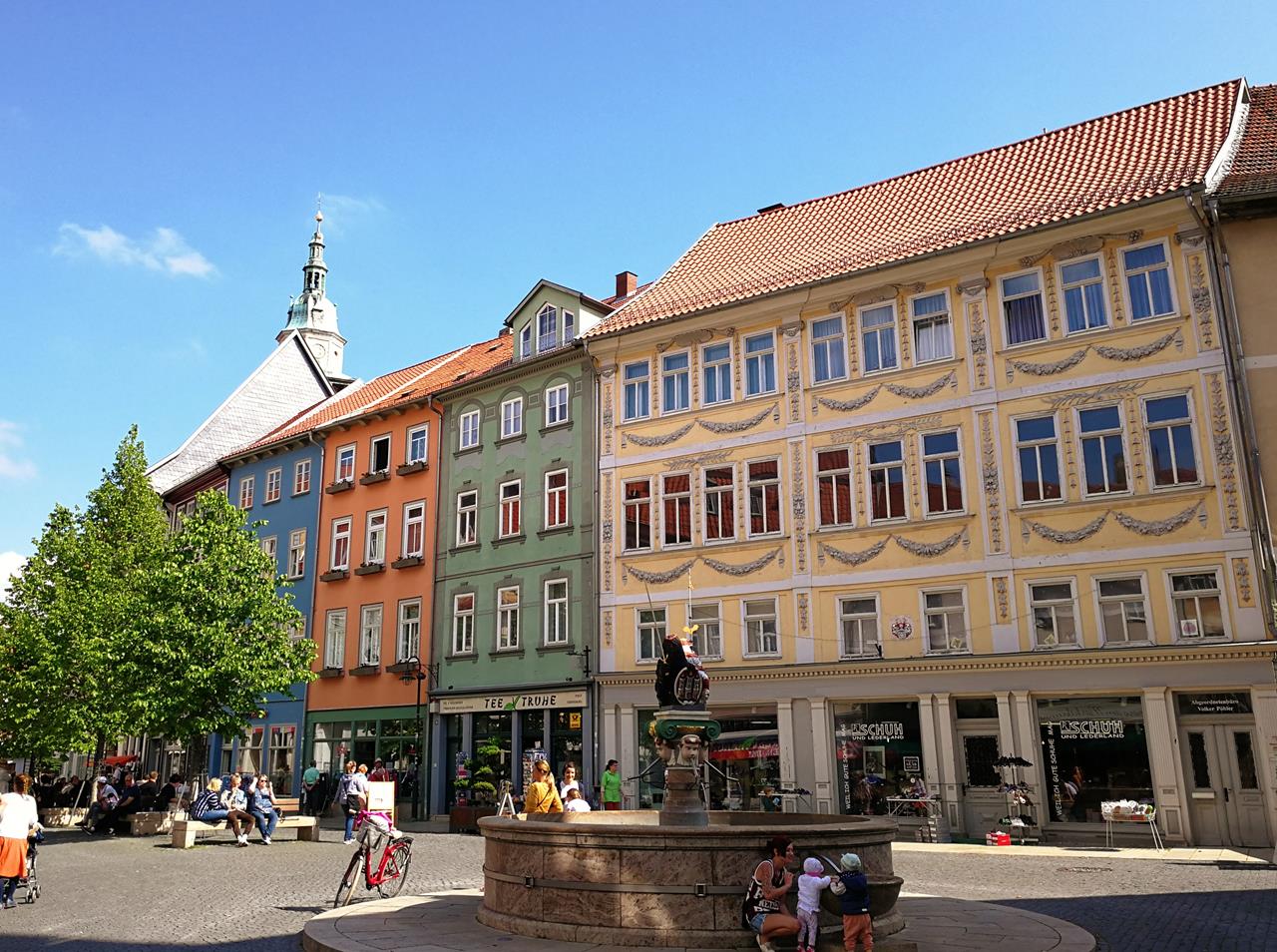Wir schauen uns die zahlreichen gut erhaltenen Kauf- und Patrizierhäusern in der Altstadt an und laufen dann zur Orangerie mit ihrem schönen Park und den sich daran anschließenden englischen Landschaftsgarten. Eigentlich wollte ich heute noch weiter nach Mühlhausen fahren, aber es gefällt mir wirklich ausnehmend gut hier. Ich glaube, wir bleiben noch etwas in Gotha.