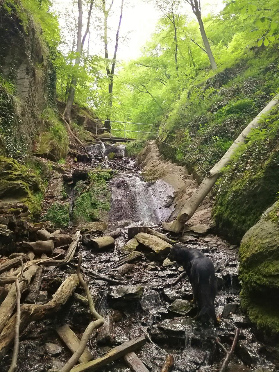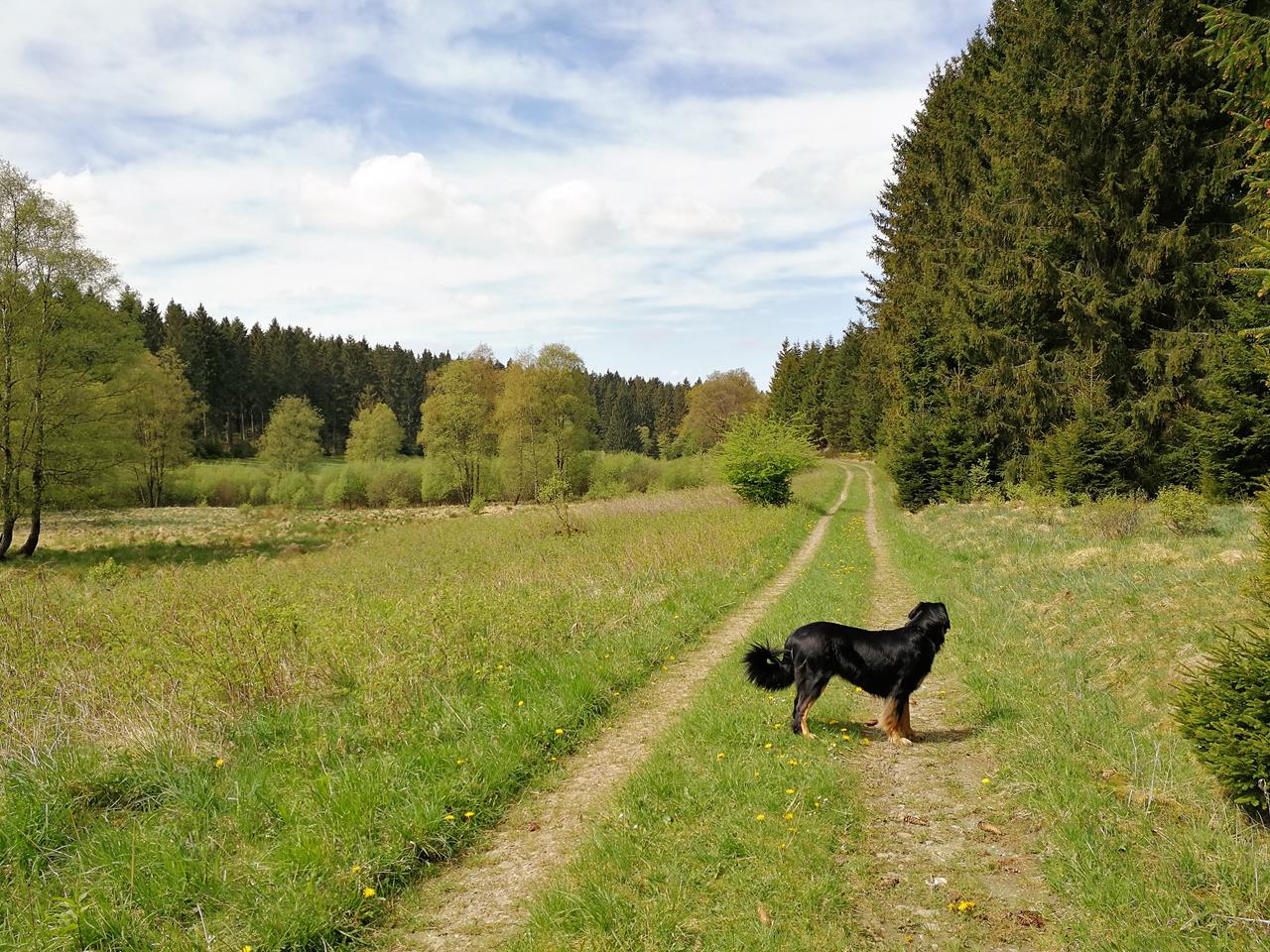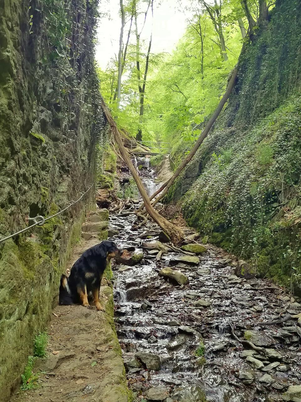 Als ich oben noch die Aussicht bestaune, höre ich Doxi unten bellen. Ein großer blonder Hovawart-Rüde hat sich ihr genähert und das passt Madame gar nicht. Wieder unten angekommen, lerne ich den hübschen Bentley und seinen Besitzer kennen. Unter Hovawart-Haltern tauscht man sich ja gerne aus. Es ergibt sich ein netter Plausch.