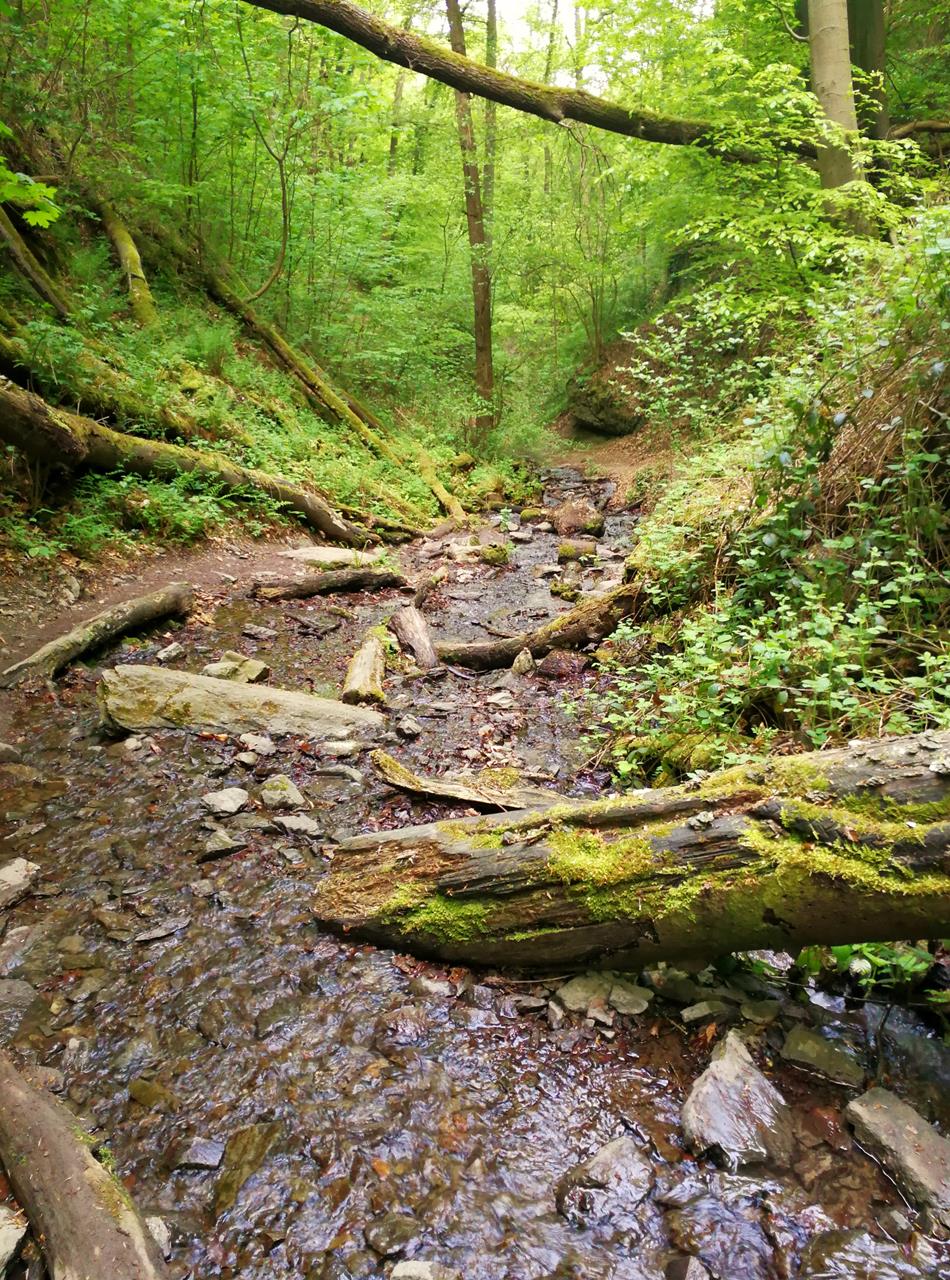 Ich packe Doxi in den Fahrradanhänger und radele mit ihr über die Seebrücke hinüber zum Parkplatz am Restaurant Torhaus. Dort stelle ich das Fahrrad ab und wandere mit Doxi den Höhenzug hinauf zum Möhneseeturm.
