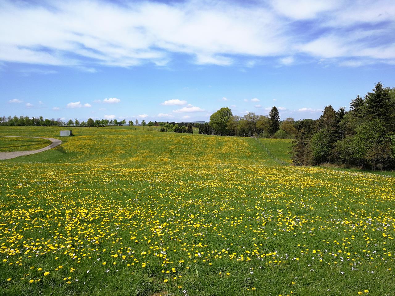 kräftigsten Farben. Ein blühendes Rapsfeld wetteifert mit der Sonne um das schönste Gelb – und gewinnt.