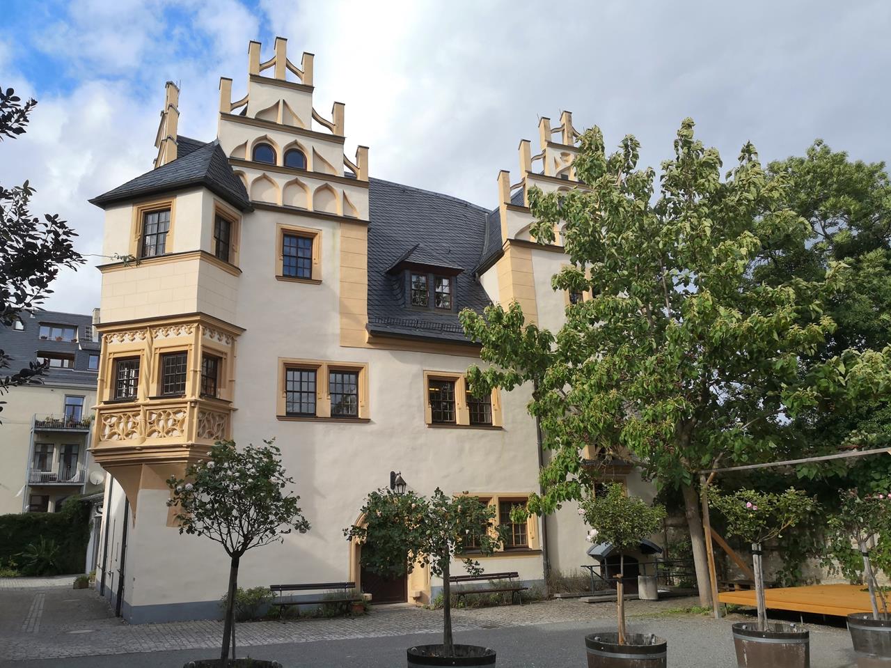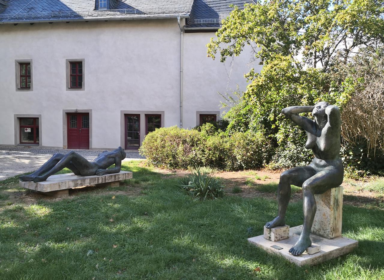 Bald stoßen wir auf die Weida und folgen dieser zunächst zum ehemaligen Kloster Mildenfurth, das von außen wie eine Burg wirkt. Leider dürfen wir das Gelände nicht betreten, weil dort umfangreiche Rekonstruktionsarbeiten im Gang sind.