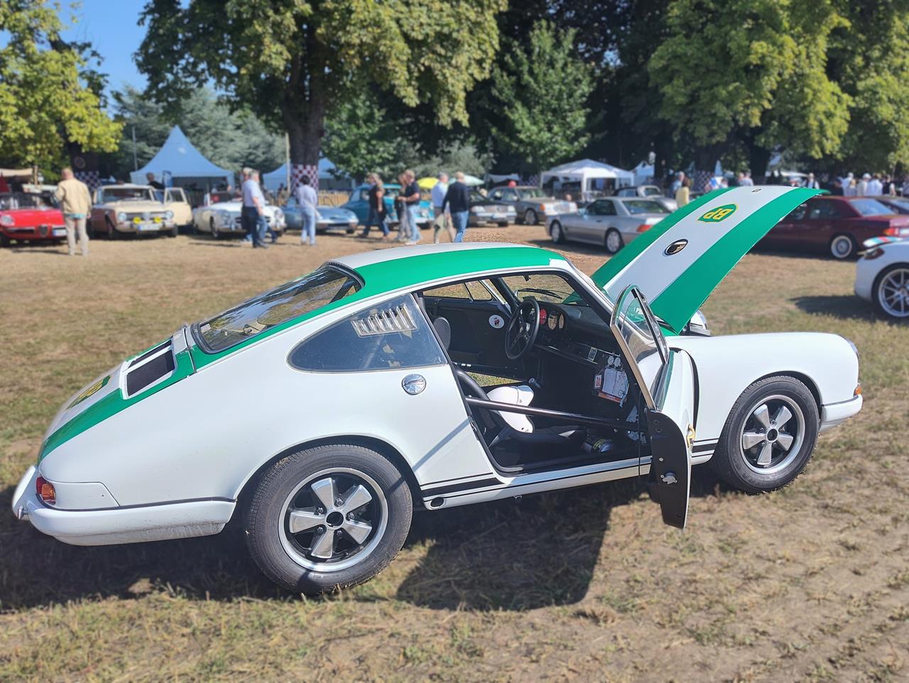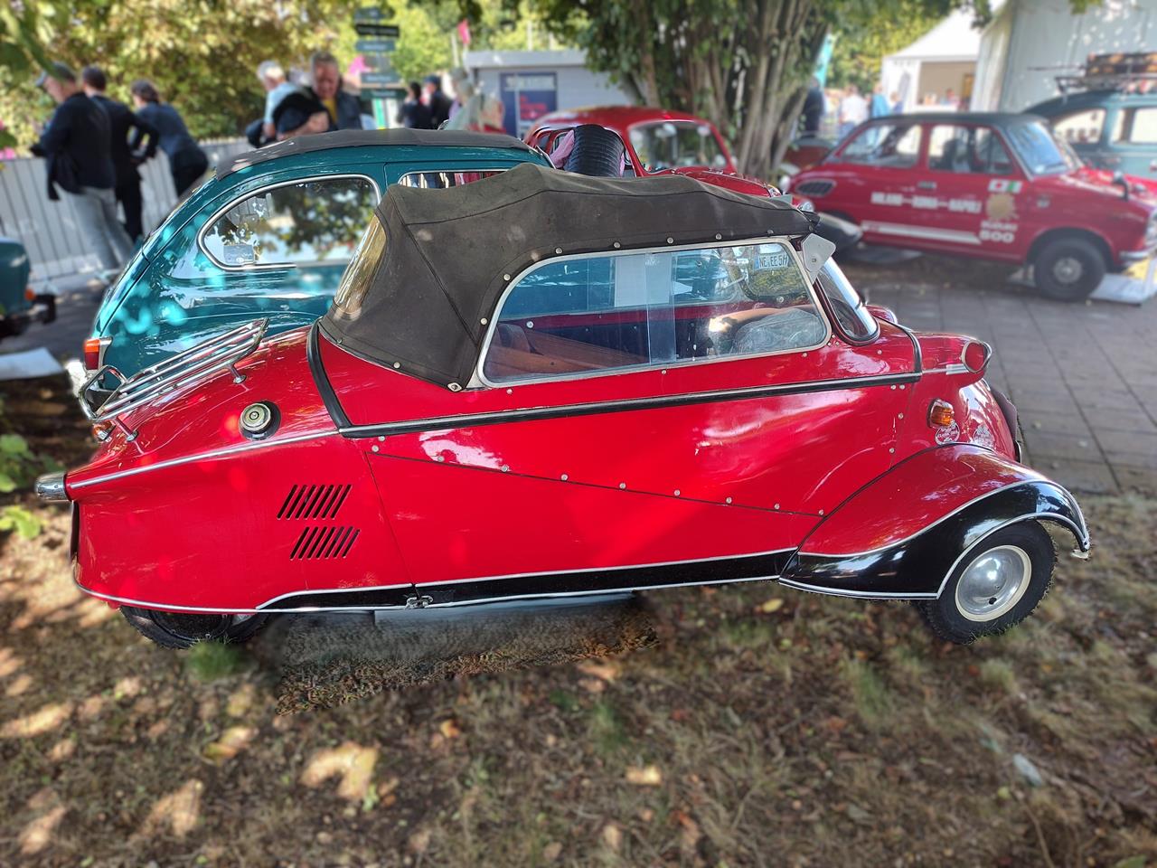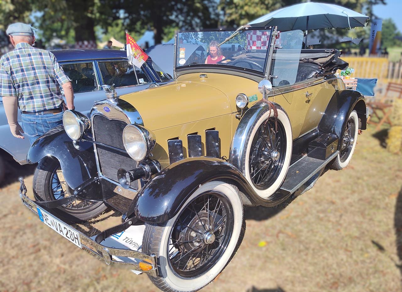 Leider herrschte an den ersten beiden Veranstaltungstagen regnerisches Wetter, doch der heutige Sonntag zeigt sich freundlich und stellenweise sogar richtig sonnig. Das habe ich für einen Besuch genutzt. In der Anfahrt aus allen Richtungen lange Schlangen von PKWs, darin viele prächtige Youngtimer und PS-starke Fahrzeuge. Mich konnte der Stau nicht schrecken, denn ich war natürlich mit dem Motorrad unterwegs und rollte dynamisch vorbei 🙂