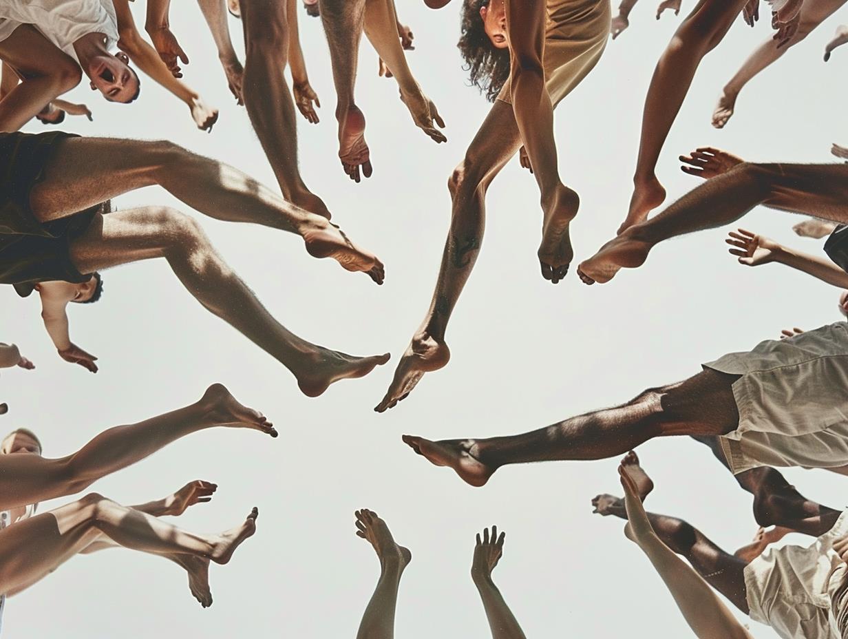 Neu aus der KI auf meiner Festplatte: Frisch imaginierte Menschengruppen inszeniert in der Art von Claudia Rogge (*1965).