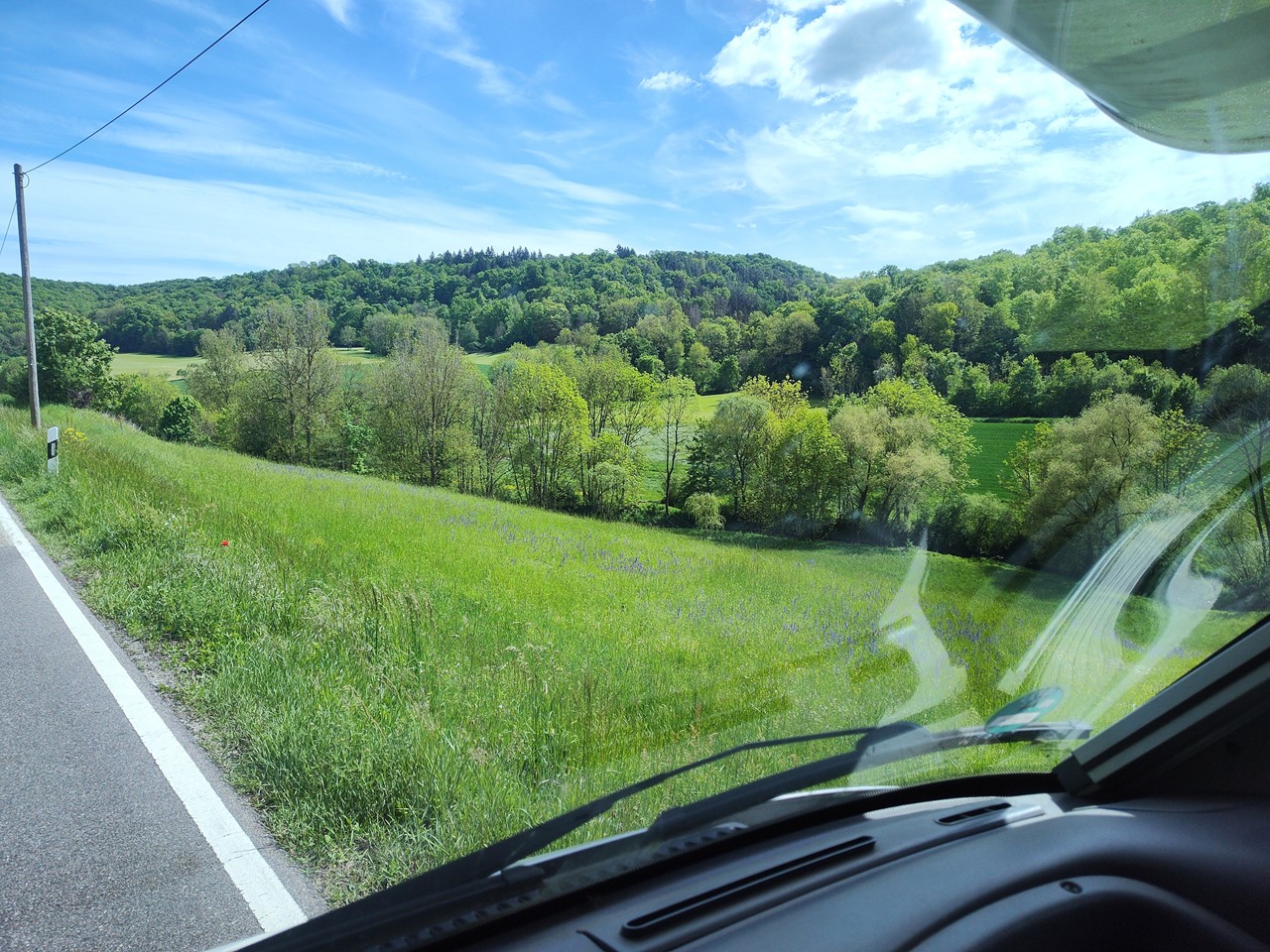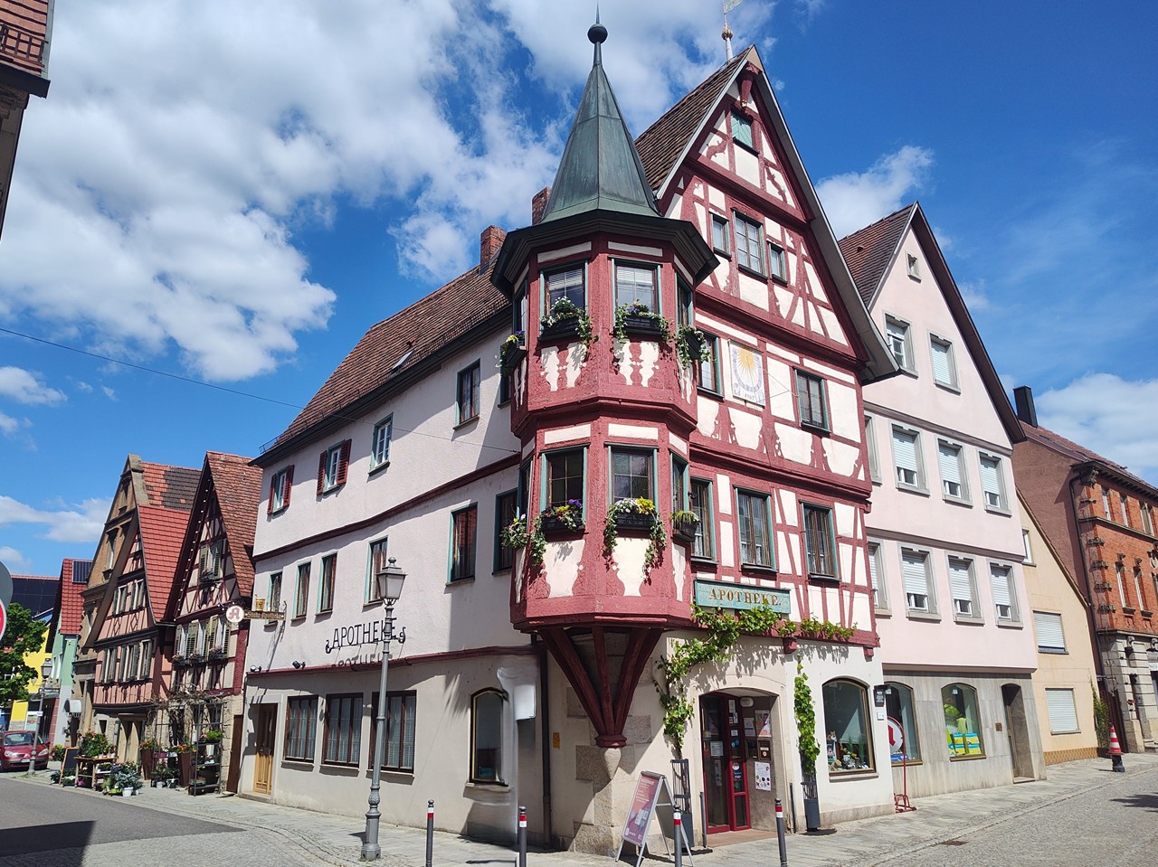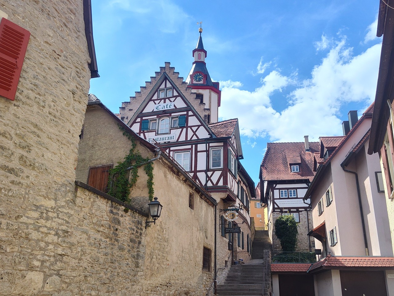 Meine letzte Station im Taubertal heute: Creglingen auf halber Strecke zwischen Bad Mergentheim und Rothenburg ob der Tauber. Hier kann sich Doxi zum ersten Mal so richtig in der Tauber stärken, denn hinter dem großen Wehr an der Tauberbrücke ist der Fluss besonders seicht.