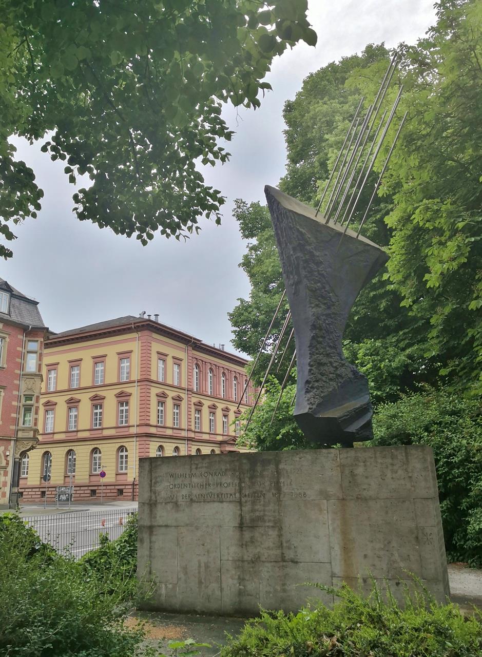 Wie ich auf einer Infotafel erfahre, wurde nahezu der gesamte historische Stadtkern Gießens durch einen Feuersturm im Anschluss an einen massiven alliierten Luftangriff im Dezember 1944 vernichtet.