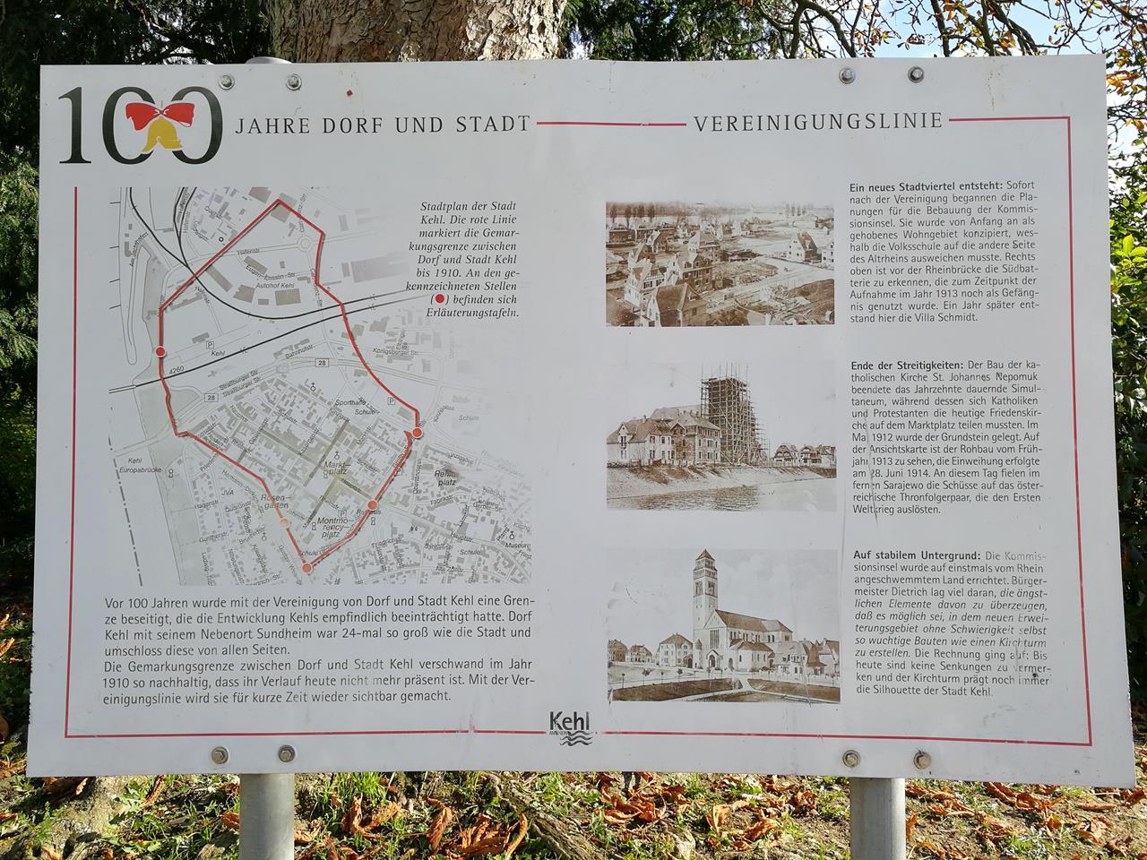 Kehl blickt auf eine wechselvolle Geschichte im Kräftespiel zwischen Frankreich und Deutschland zurück. Als Brückenkopf zu den rechtsrheinischen Gebieten Frankreichs war Kehl häufig Schauplatz kriegerischer Handlungen. Mehrfach wurde die Stadt im Laufe ihrer Geschichte zerstört und anschließend wiederaufgebaut.Unter König Ludwig XIV. gehörte die Stadt zu Frankreich, später dann wieder zu Baden und auch eine Zeitlang zu Österreich. Das Logo der modernen Stadt Kehl ist als Bezug auf den Rhein in Blautönen gehalten. Deshalb ist der sehr interessante Stadtrundgang als „Blauer Weg“ ausgeschildert.