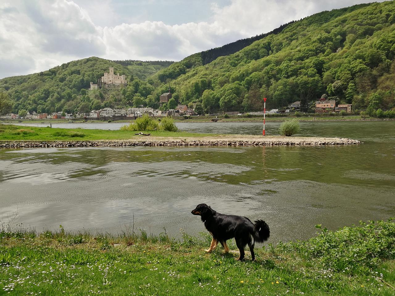 Doxi an der Mündung der Lahn in den Rhein. Im Hintergrund: Burg Stolzenfels.